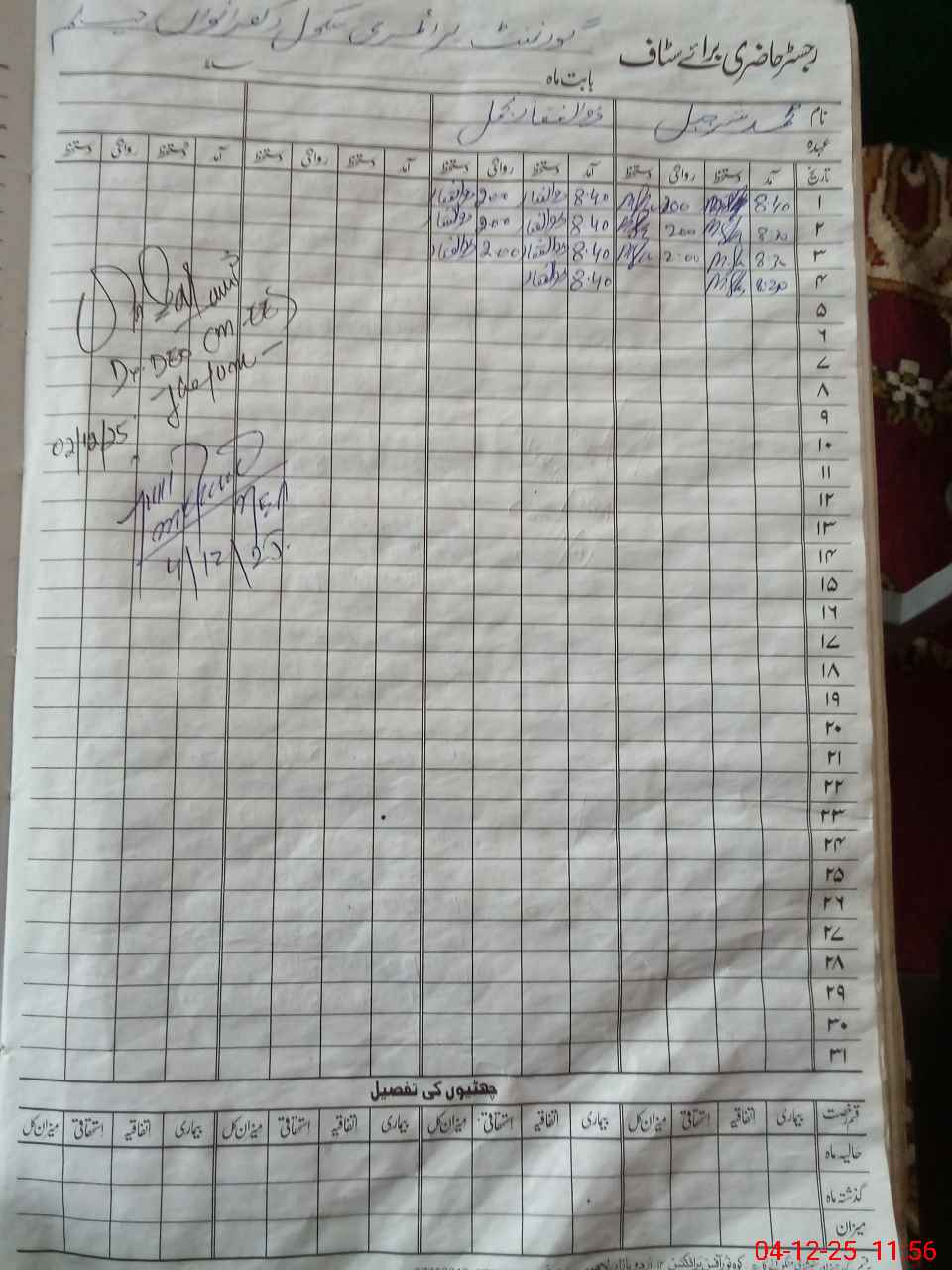| CNIC | Full Name | Designation | R/C | Absence During Last Calender Month |