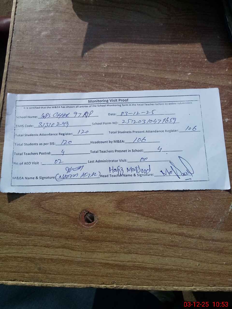 | EMIS Code: 31310249 | Name of School: GPS CHAK NO. 97/NP | |||