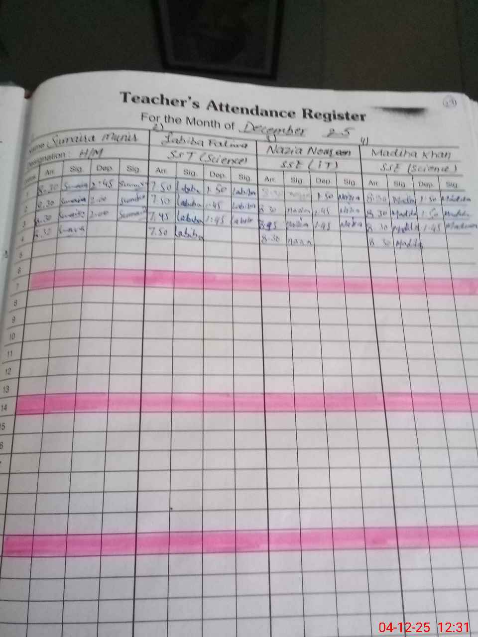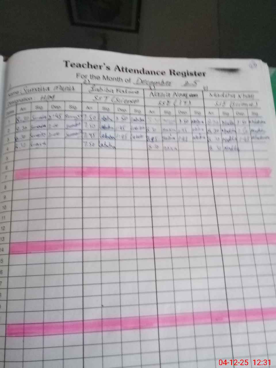 | Remarks (Use Separate Page if Required): SSE Lubna Amjad found absent since February 2025 | |||||