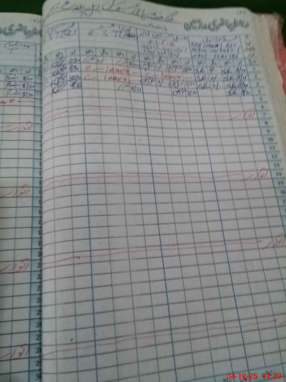 | CNIC | Full Name | Designation | R/C | Absence During Last Calender Month |