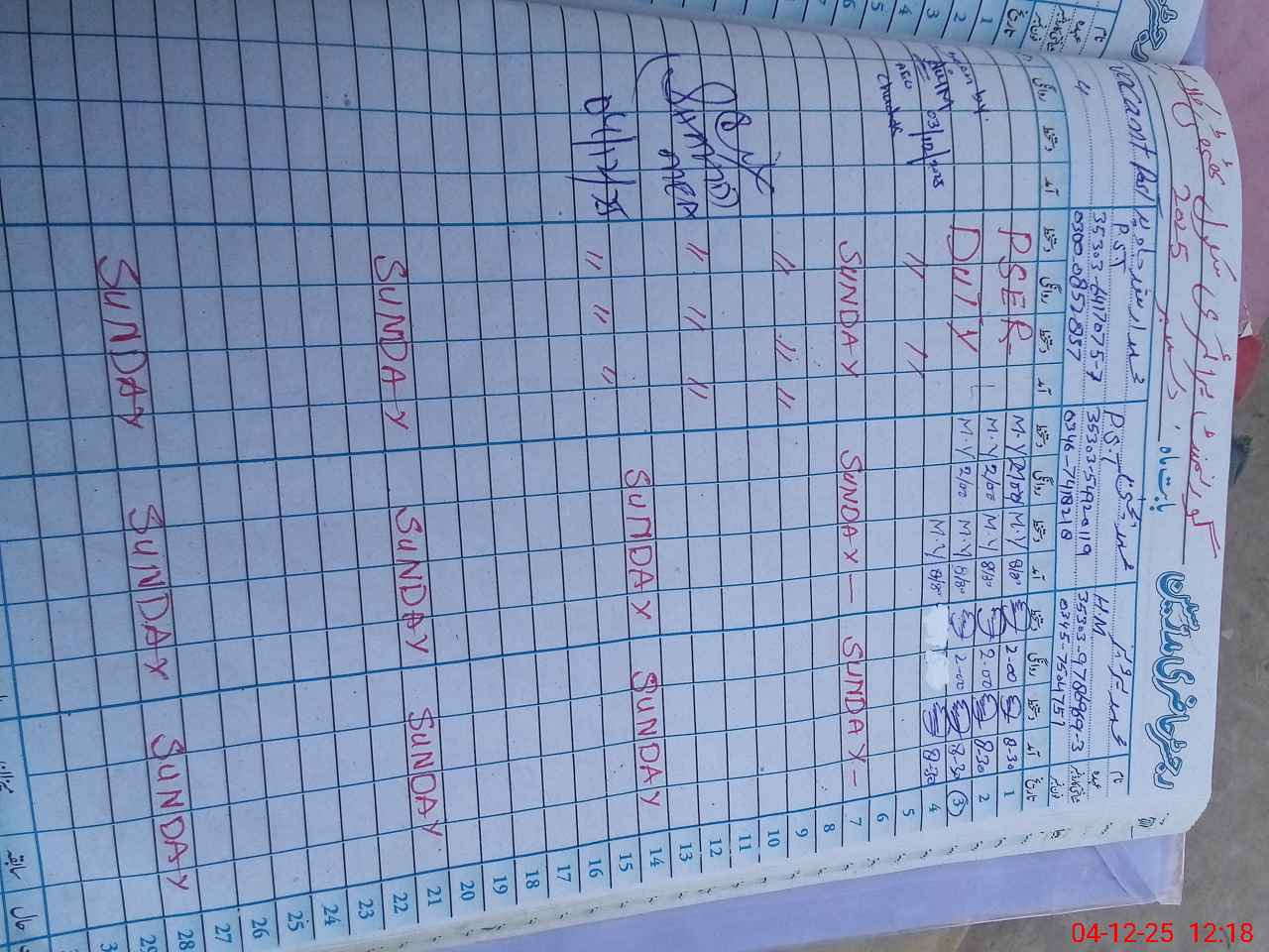 | Leave | Duty | Absent | Maternity | Medical | Ex- Pak |