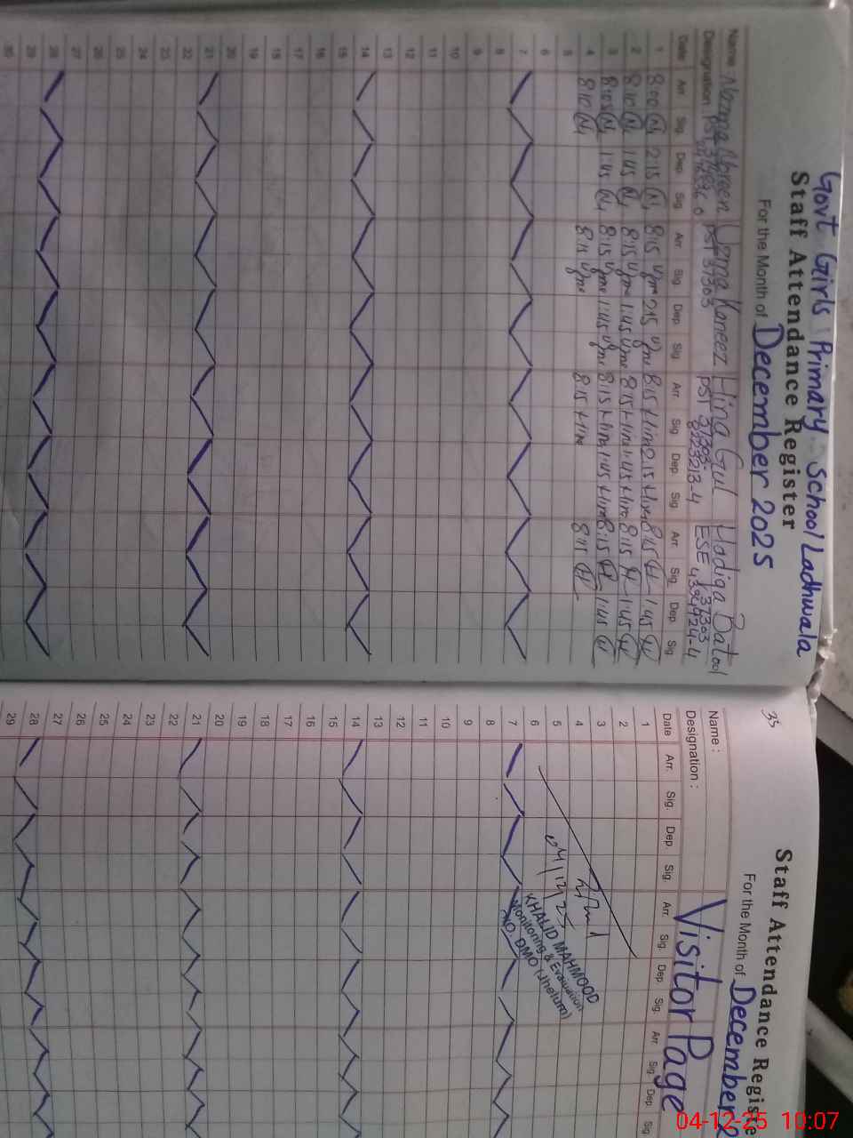 | CNIC | Full Name | Designation | R/C | Absence During Last Calender Month |