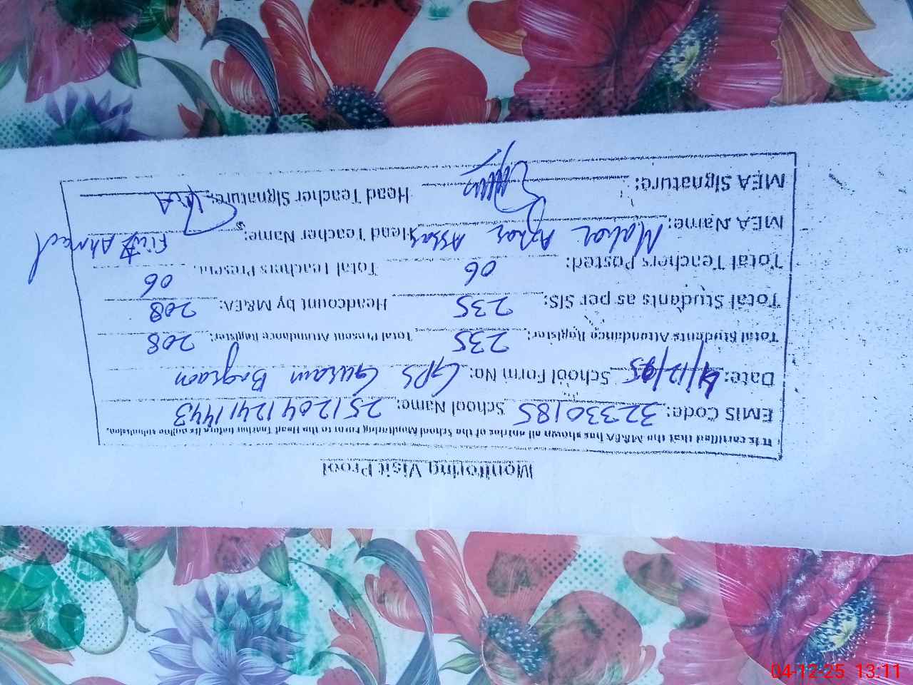 | Certified that this School was Inspected by the Undersigned MEA/DMO Today and the Information Stated Above is as Per Record. | |||||