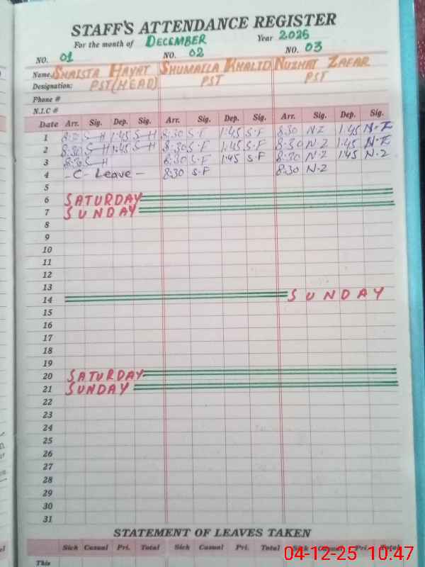 | Name: SH**** HA**** Designation: (School Headmaster's/Headmistress's) Head Mistress Phone/Cell Number: 03**** |