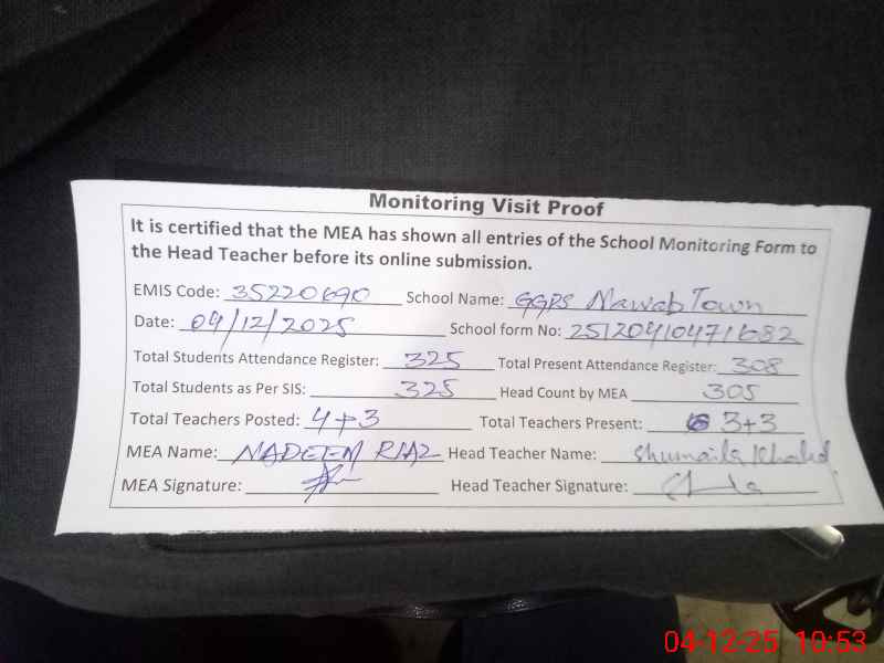 | EMIS Code: 35220690 | Name of School: GGPS NAWAB TOWN | |||