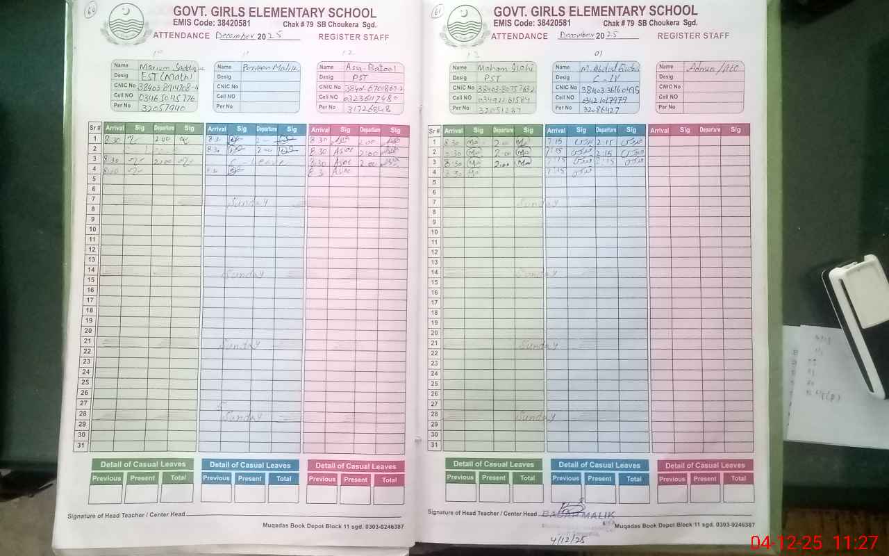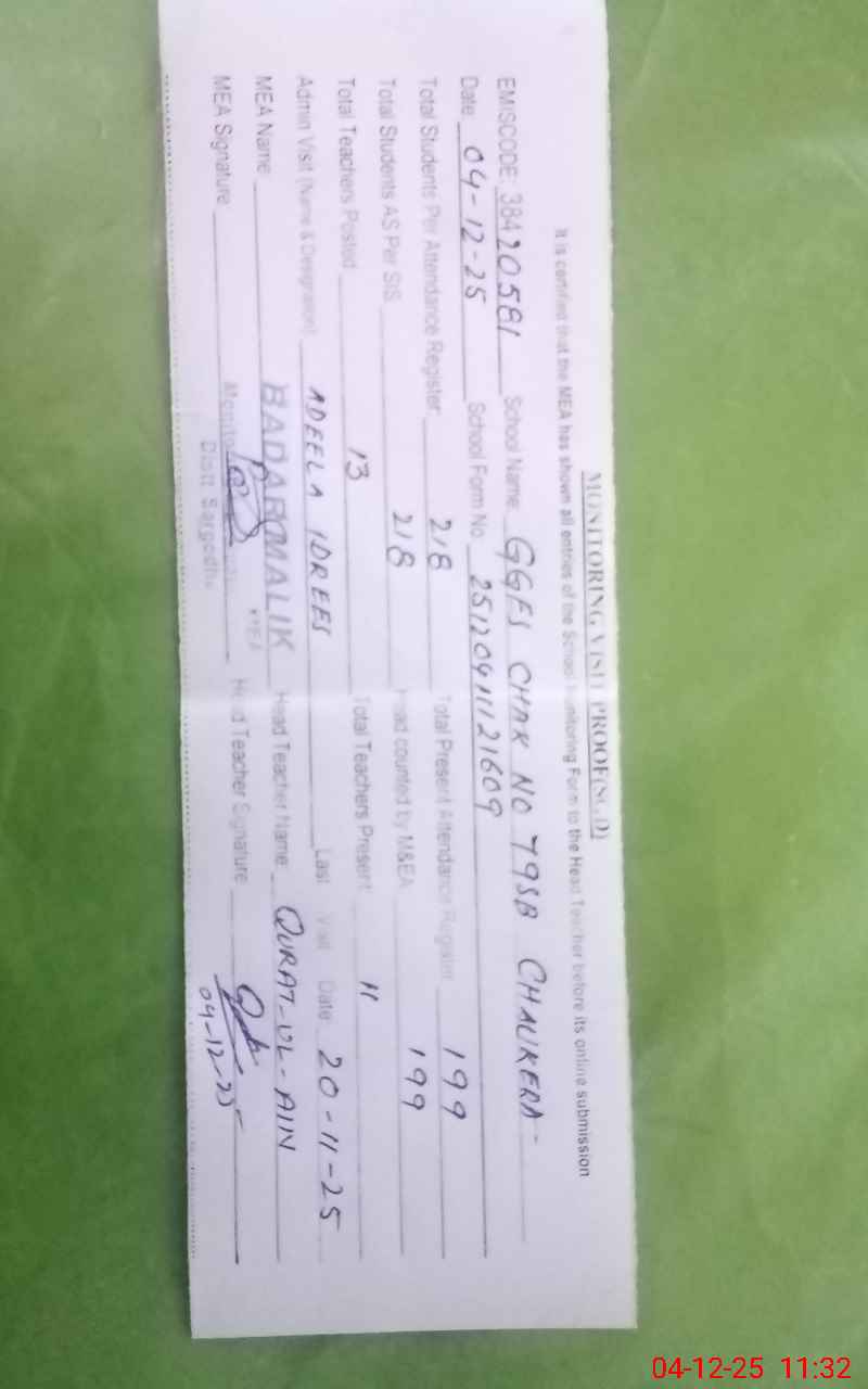 | EMIS Code: 38420581 | Name of School: GGES CHAK NO.79 SB CHAUKERA | |||