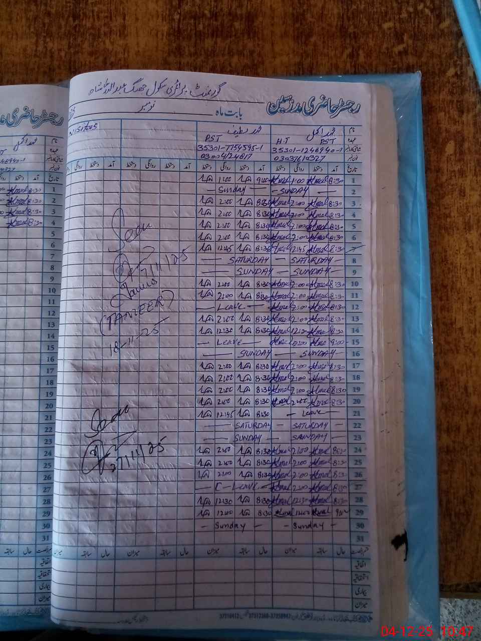 | Name: Mu**** Ak**** Designation: (School Headmaster's/Headmistress's) PST Phone/Cell Number: 03**** |