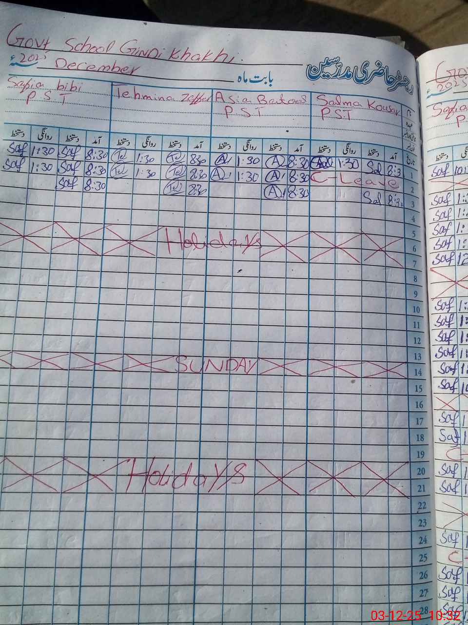| CNIC | Full Name | Designation | R/C | Absence During Last Calender Month |