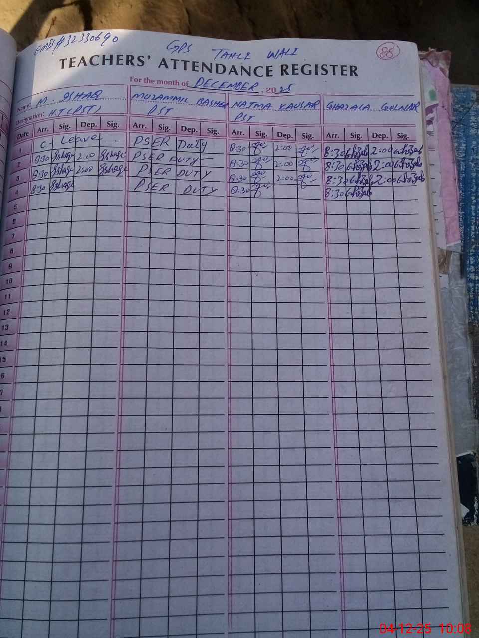 | EMIS Code: 32330690 | Name of School: GPS TAHLI WALI | |||