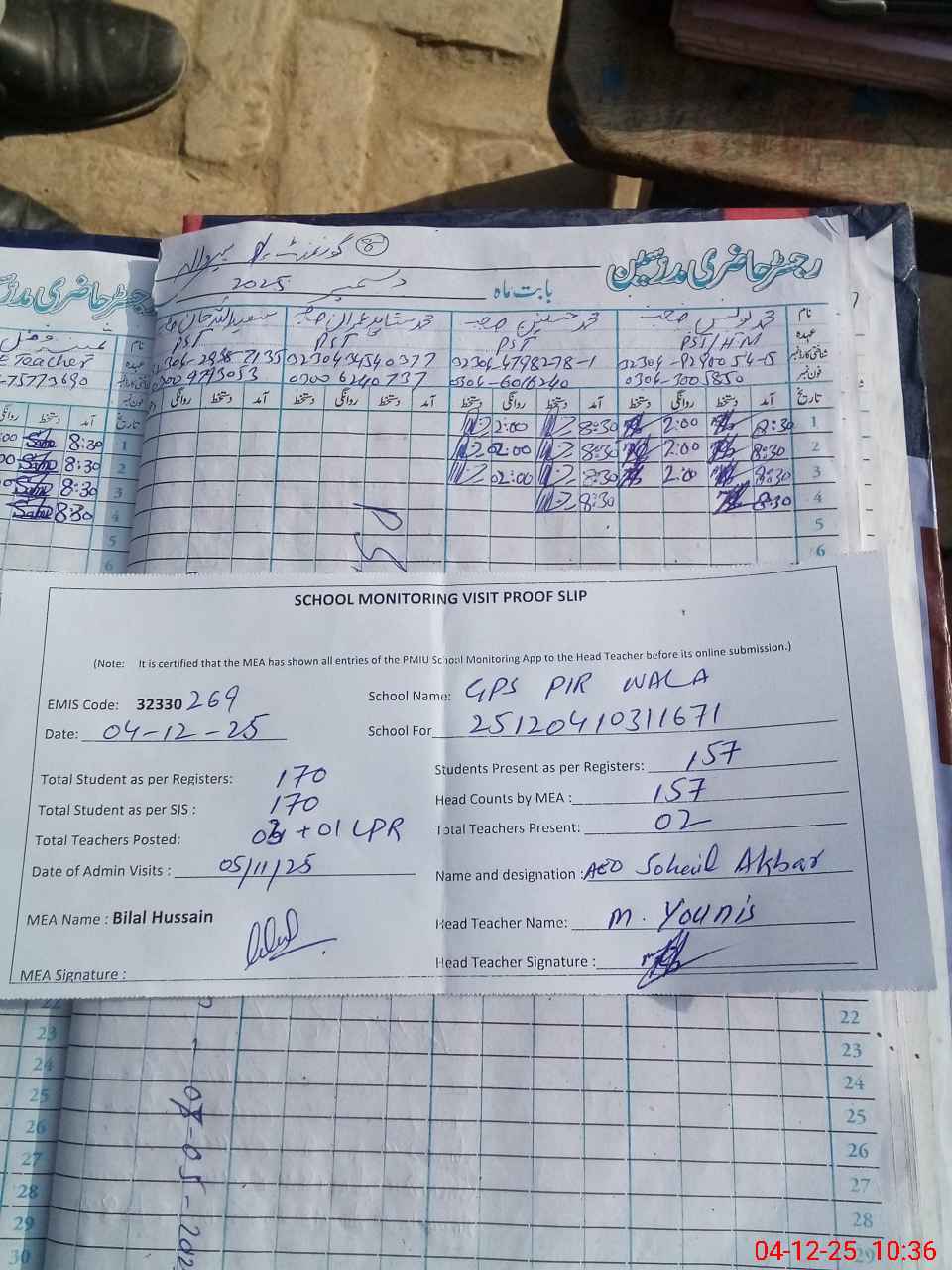 | EMIS Code: 32330269 | Name of School: GPS PIR WALA | |||