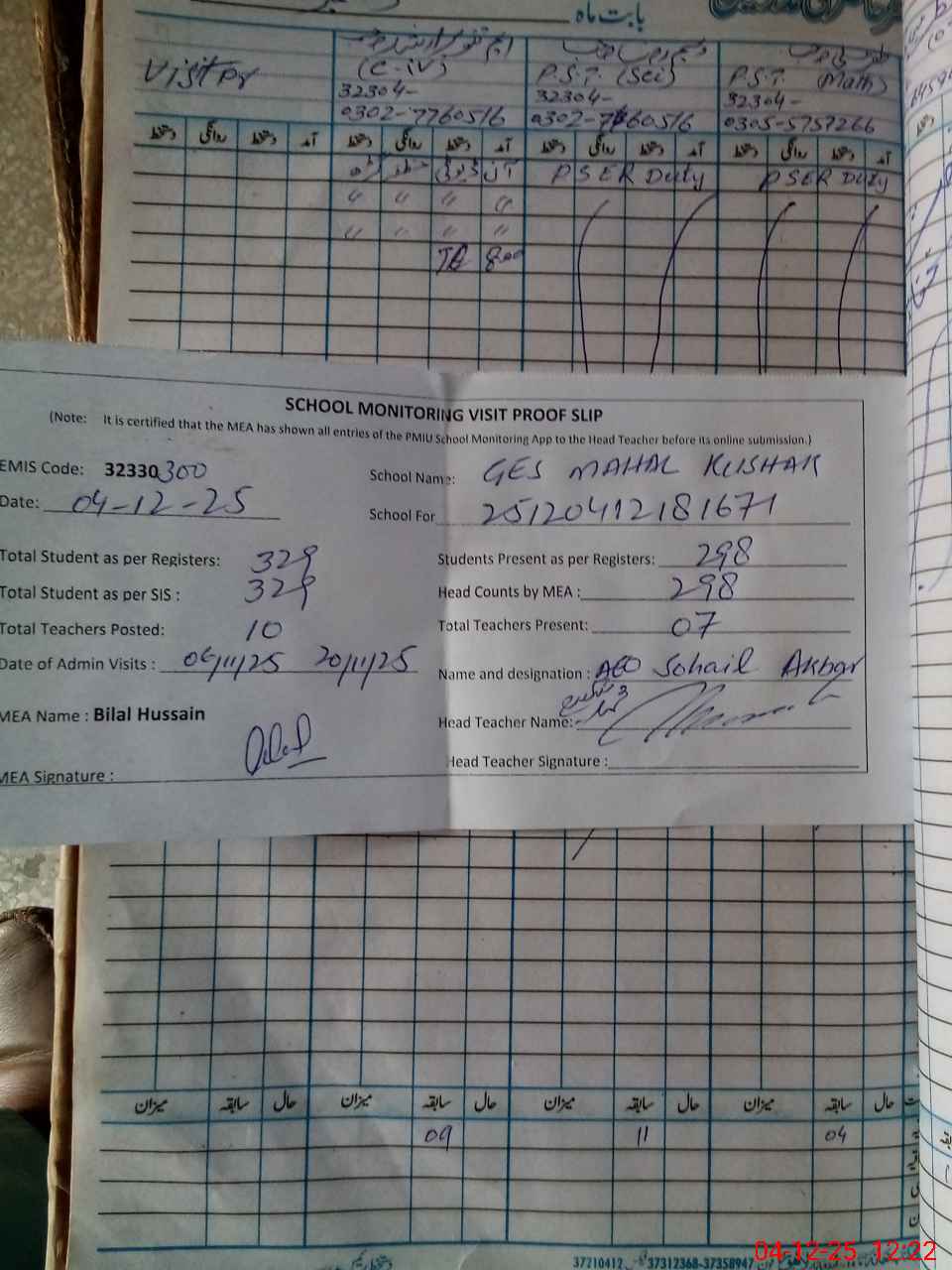 | EMIS Code: 32330300 | Name of School: GES MAHAL KUSHAK | |||