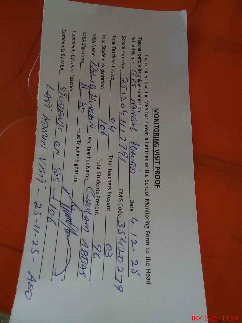 | EMIS Code: 35420279 | Name of School: GPS NANGLE KHURD | |||
