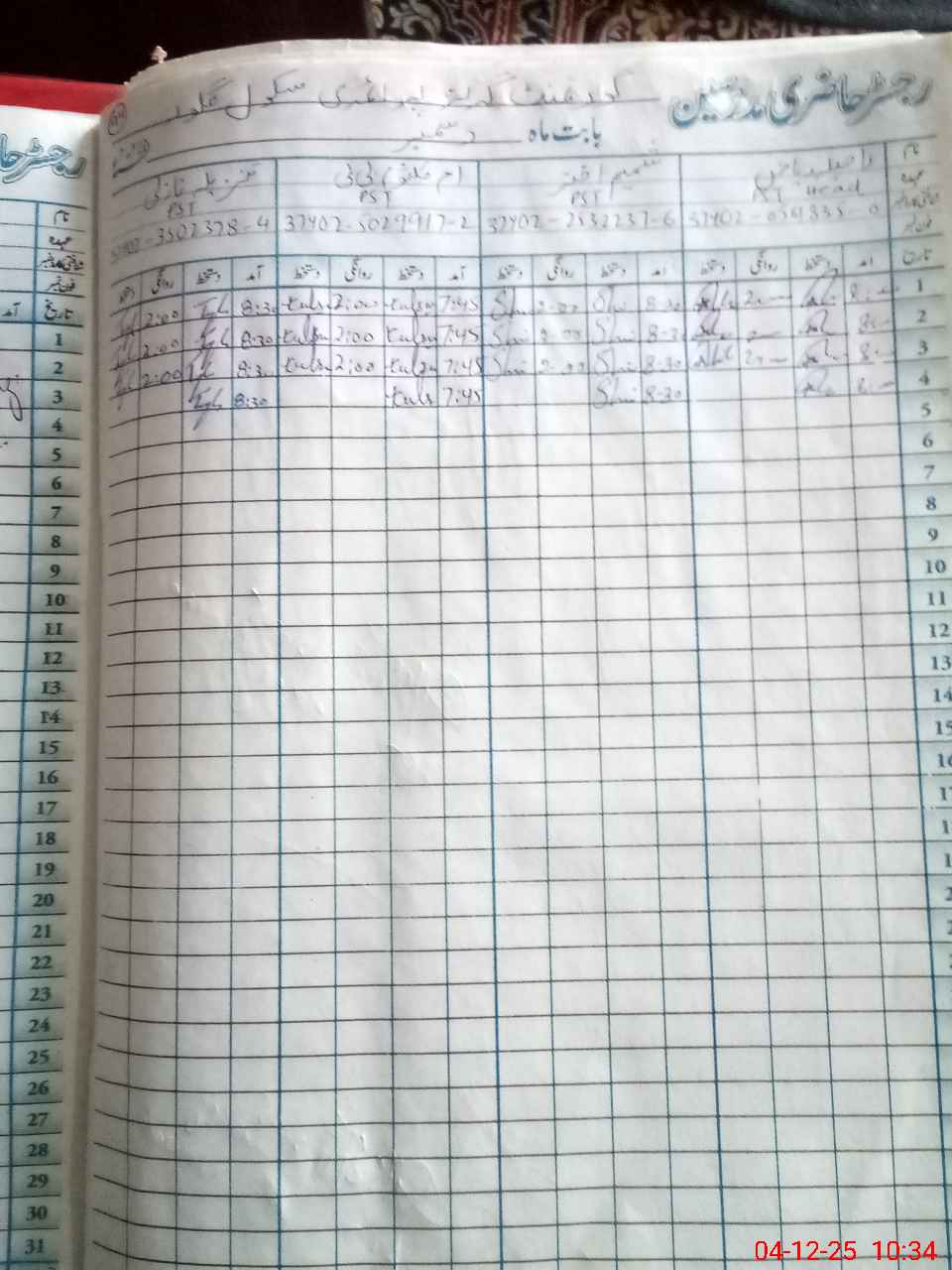 | Name: Rs**** Ri**** Designation: (School Headmaster's/Headmistress's) PST Phone/Cell Number: 03**** |