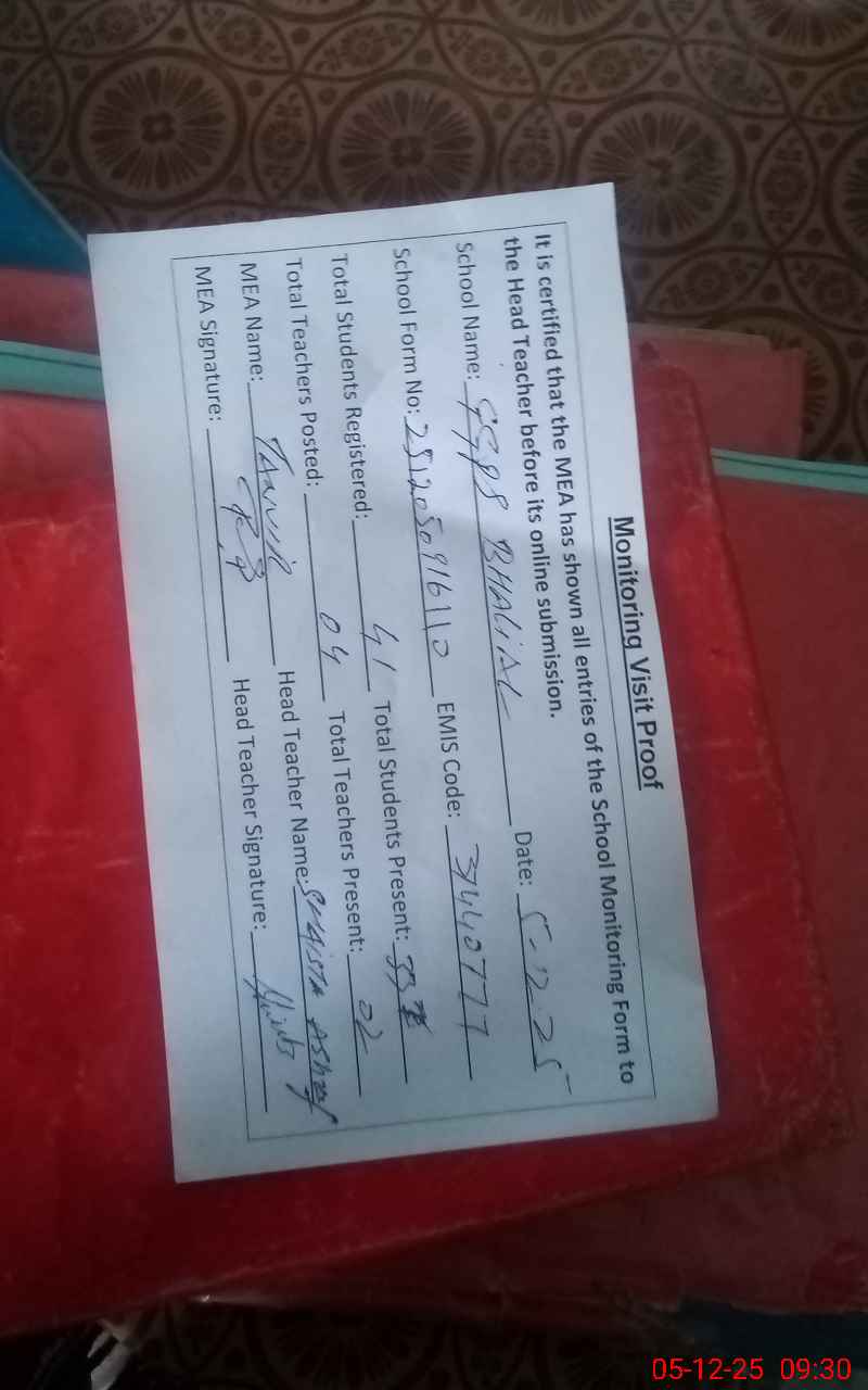 | EMIS Code: 37440777 | Name of School: GGPS BHALIAL | |||