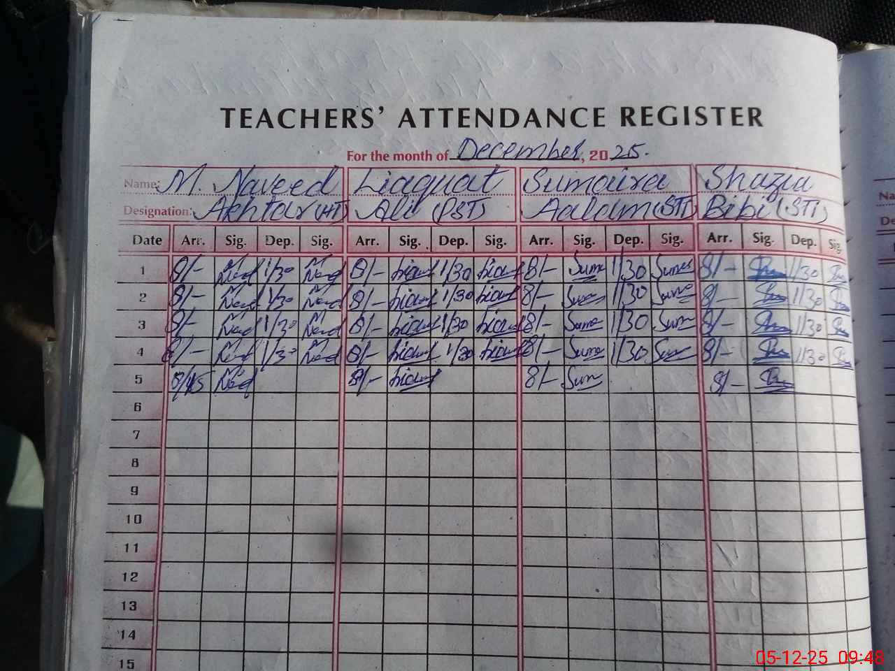 | CNIC | Full Name | Designation | R/C | Absence During Last Calender Month |