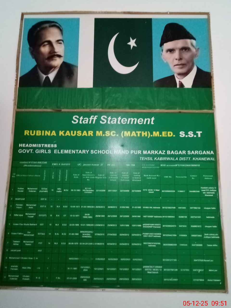 | District: KHANEWAL | Tehsil: KABIRWALA | Markaz: BAGAR SARGANA - FEMALE | Level: Middle | |