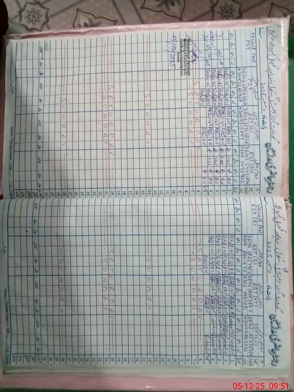 | Monitoring Date: 05-12-2025 | Start Time: 05-12-2025 08:56 AM | End Time: 05-12-2025 09:54 AM | Name of MEA: Mu**** Ja**** | |