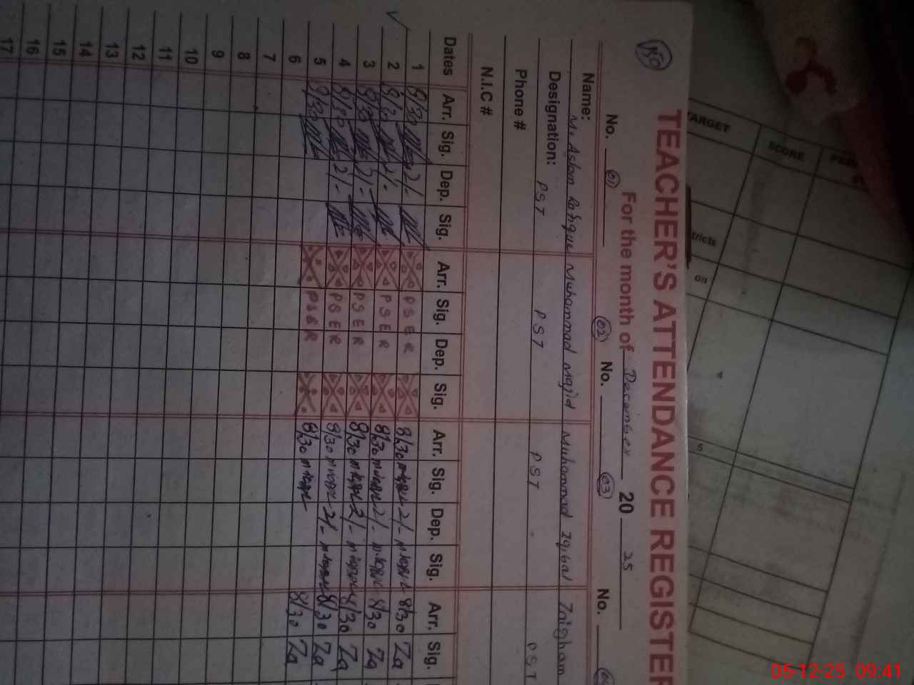 | Name: MAs**** Ra**** Designation: (School Headmaster's/Headmistress's) PST Phone/Cell Number: 03**** |