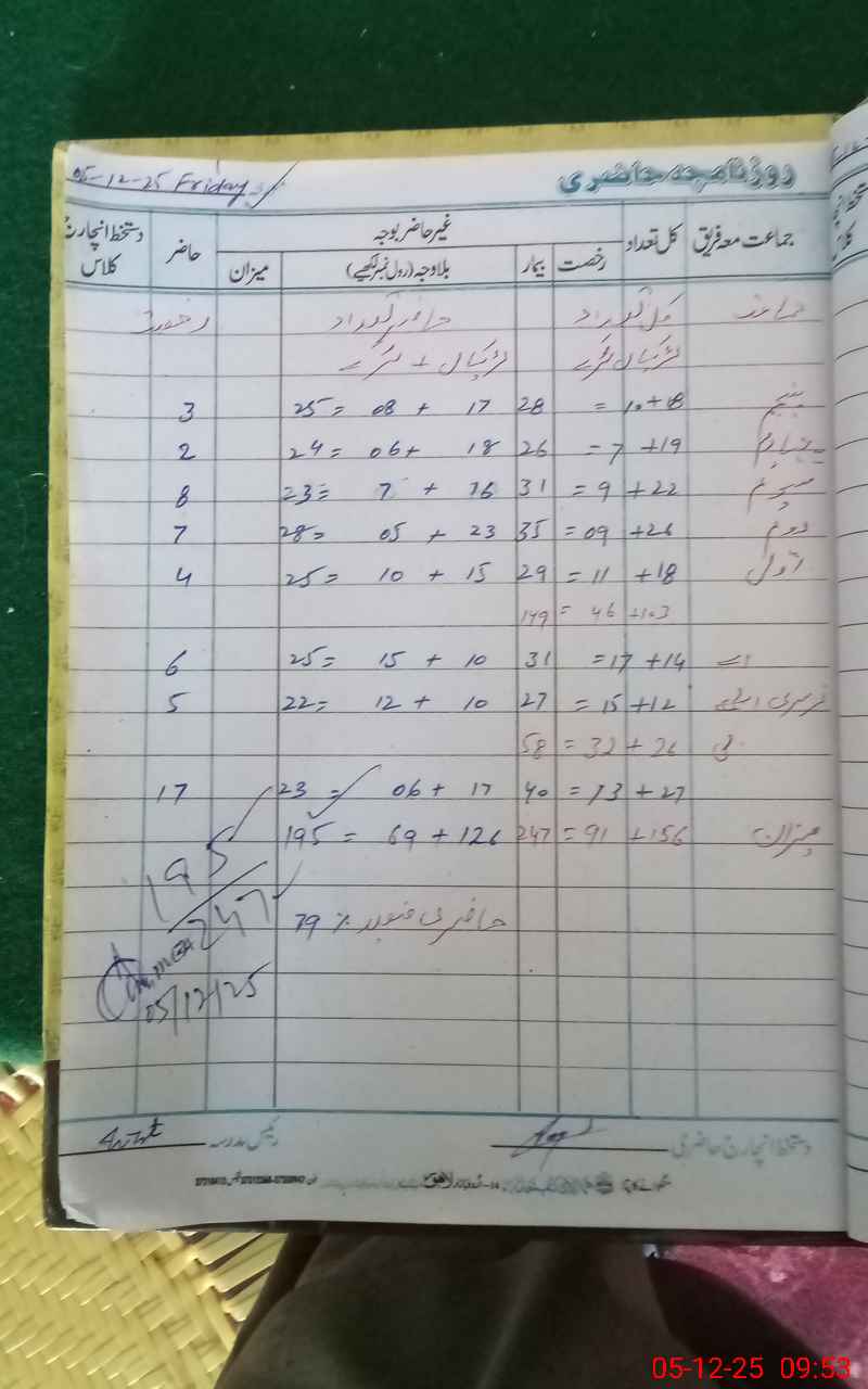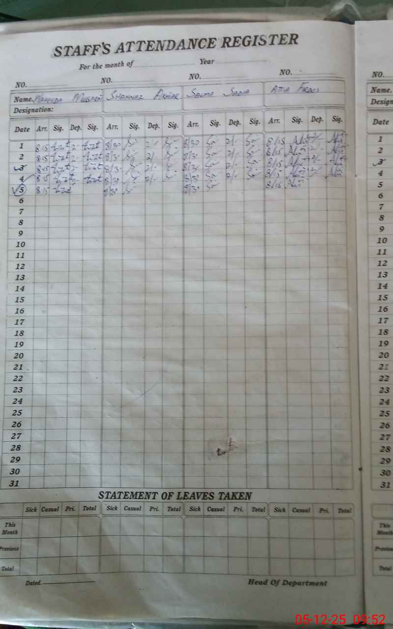 | CNIC | Full Name | Designation | R/C | Absence During Last Calender Month |