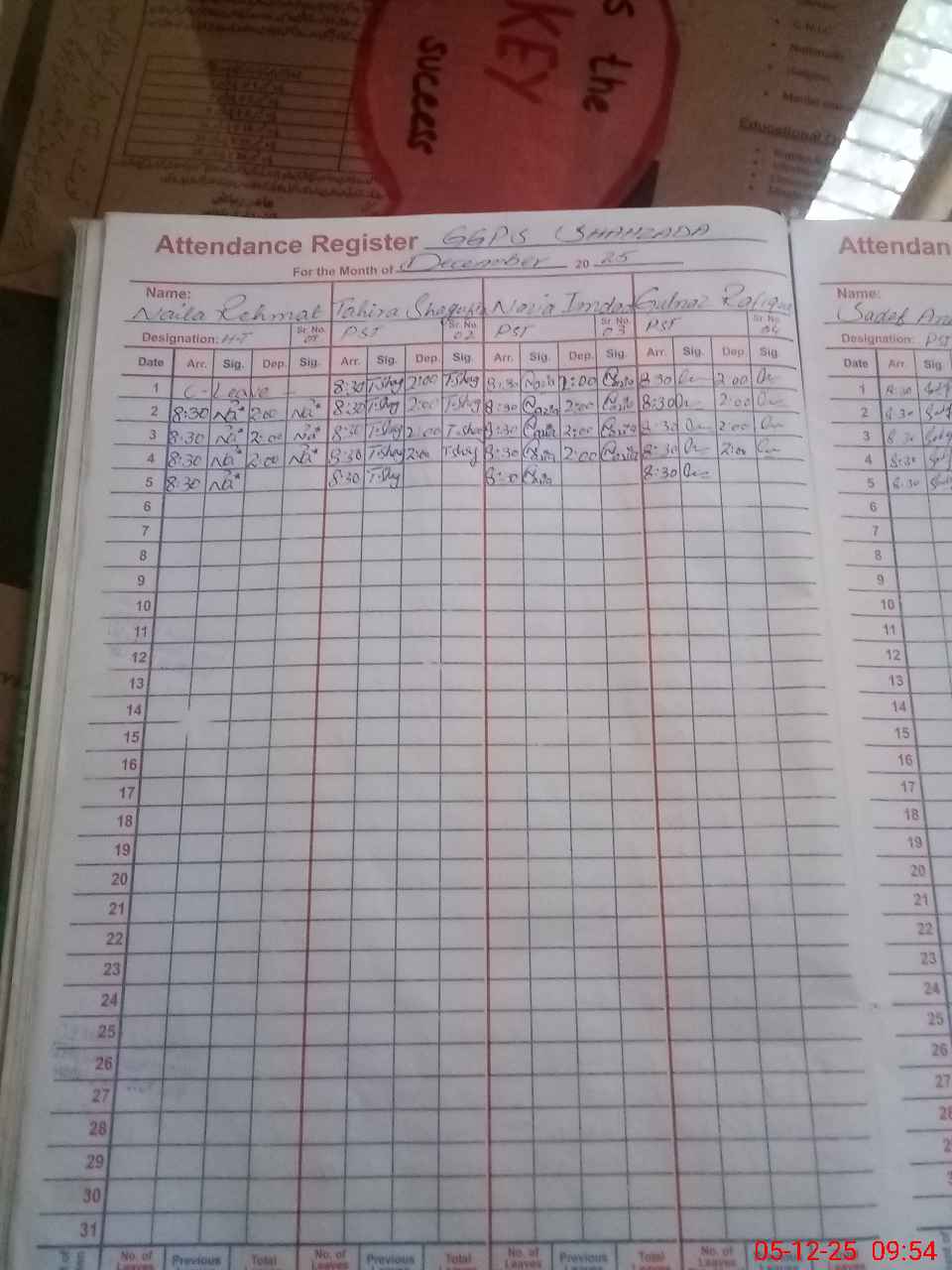 | CNIC | Full Name | Designation | R/C | Absence During Last Calender Month |