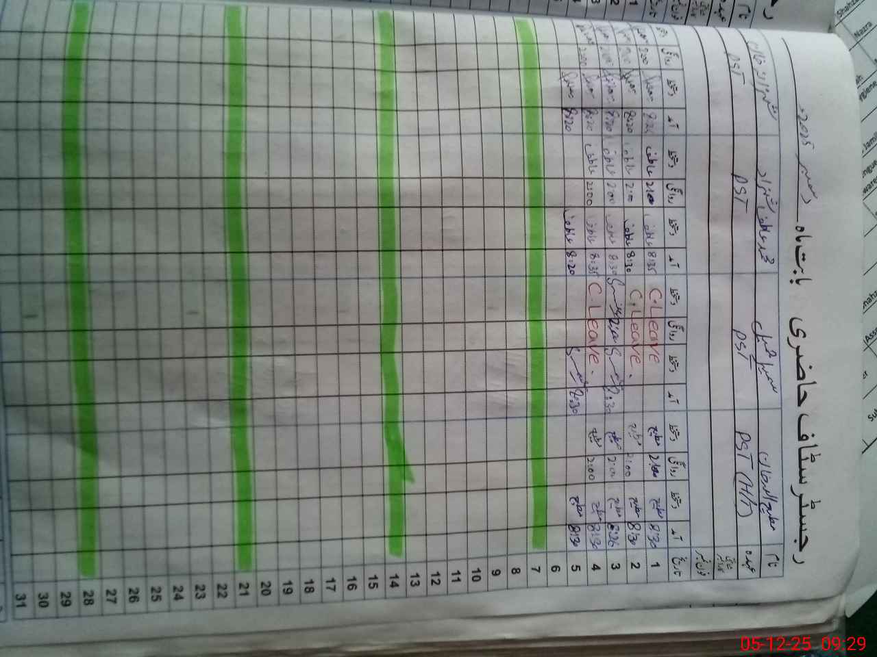 | CNIC | Full Name | Designation | R/C | Absence During Last Calender Month |