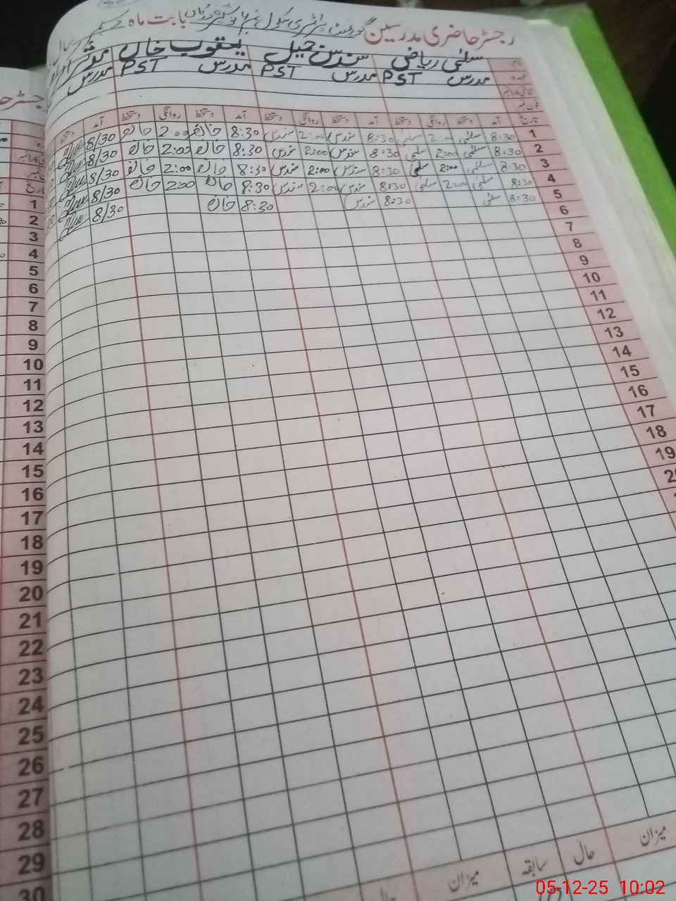 | CNIC | Full Name | Designation | R/C | Absence During Last Calender Month |