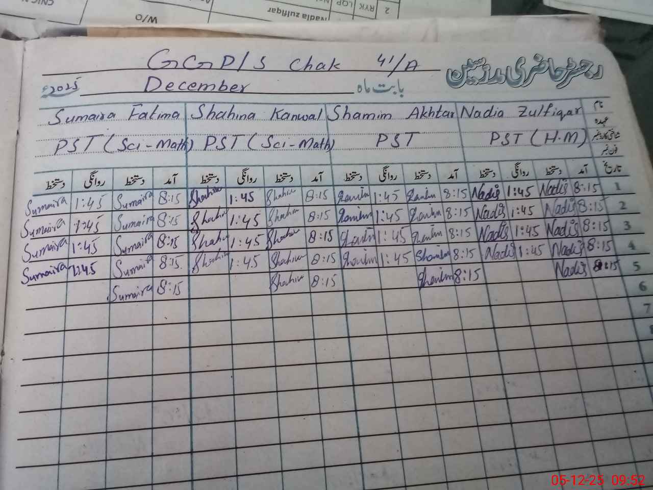 | Name: NA**** ZU**** Designation: (School Headmaster's/Headmistress's) PST Phone/Cell Number: 03**** |