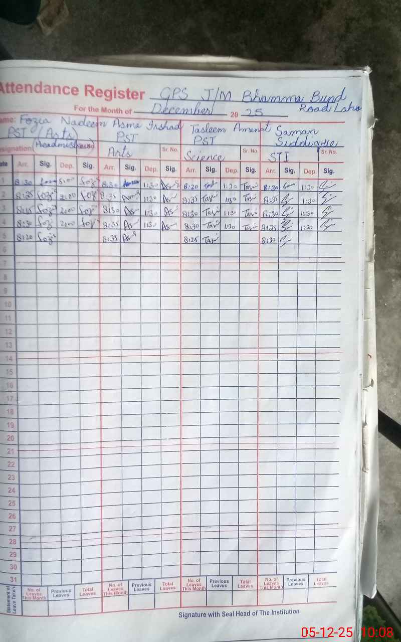| 37**** | Sa**** Re**** | PST Science/Maths | Regular | 0 | 0 | 0 | 0 | 0 | 0 | 0 | 0 | 0 | Absent (Un-Authorized) |