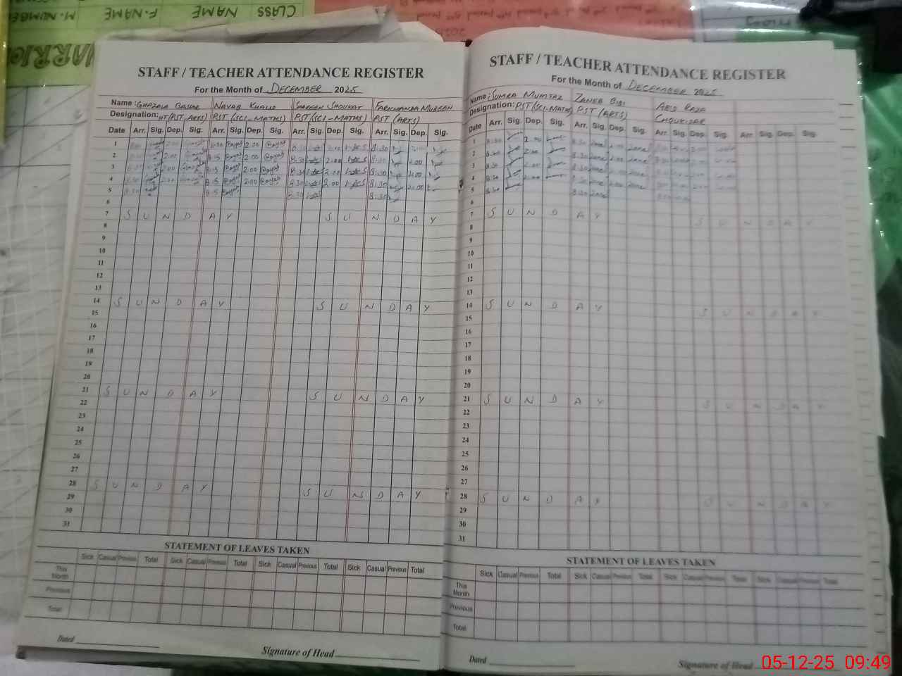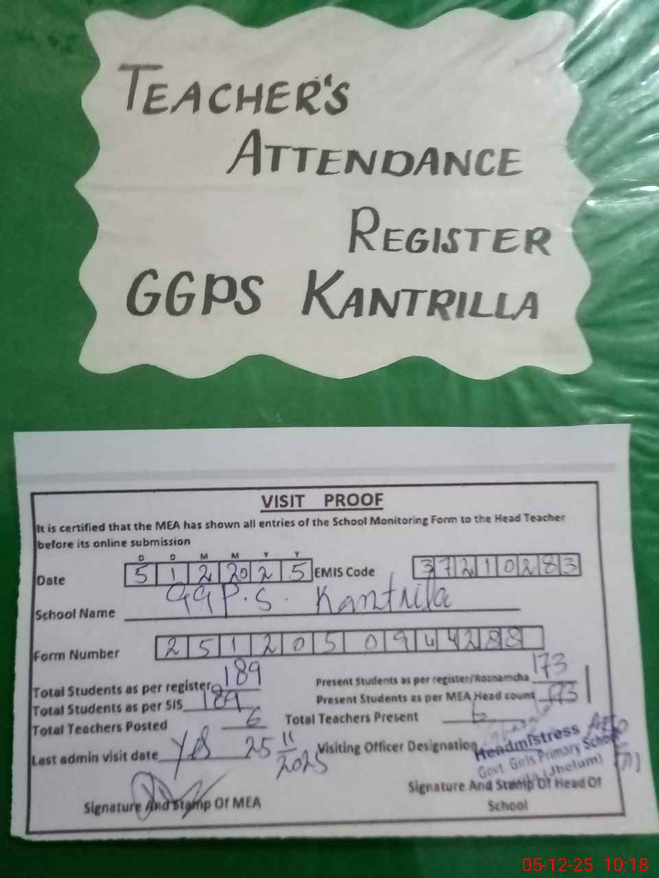 | Attendance Register | Head Teacher | MEA with School | Visit Proof |