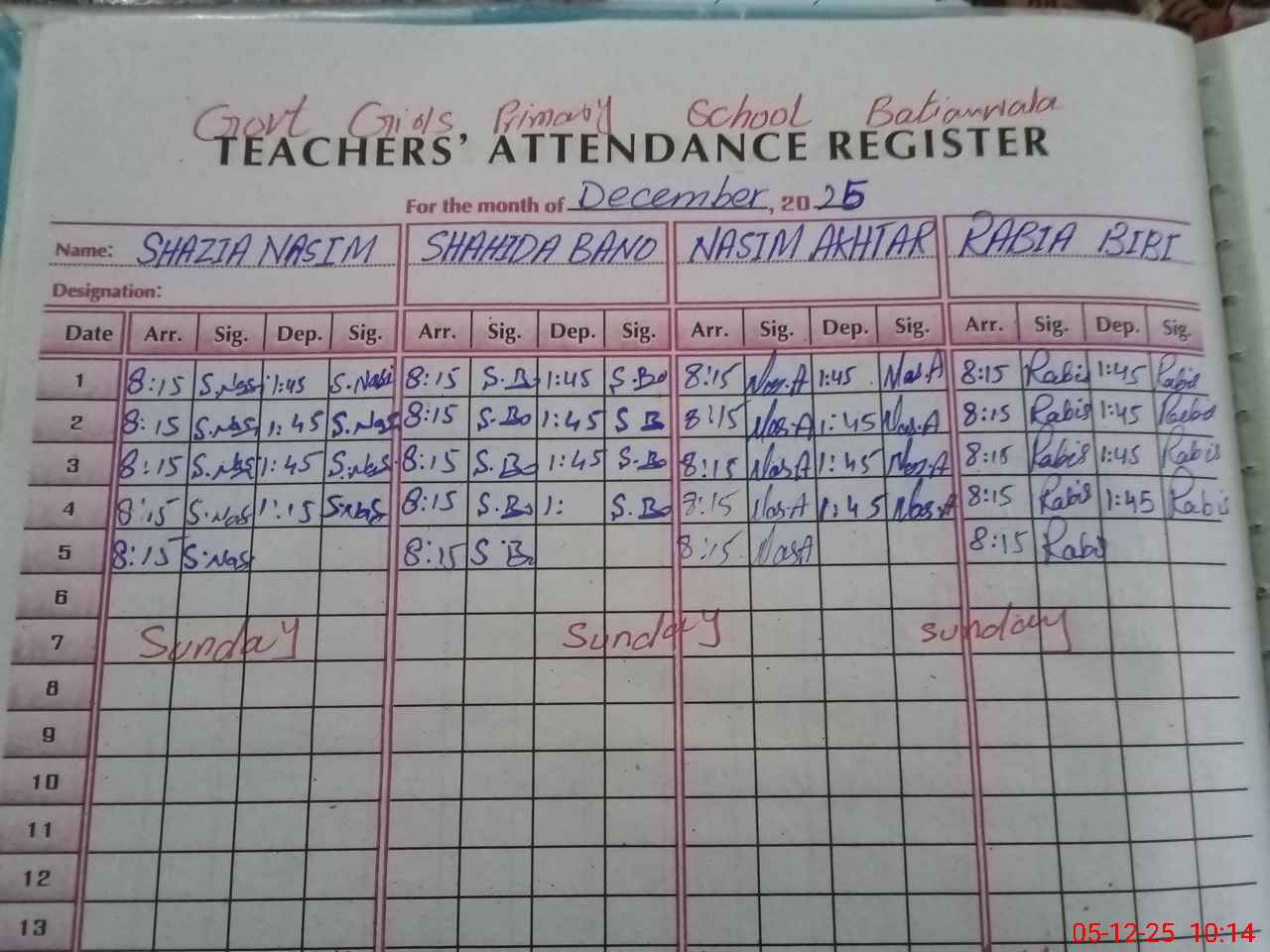 | Name: SH**** NA**** Designation: (School Headmaster's/Headmistress's) PST Phone/Cell Number: 03**** |