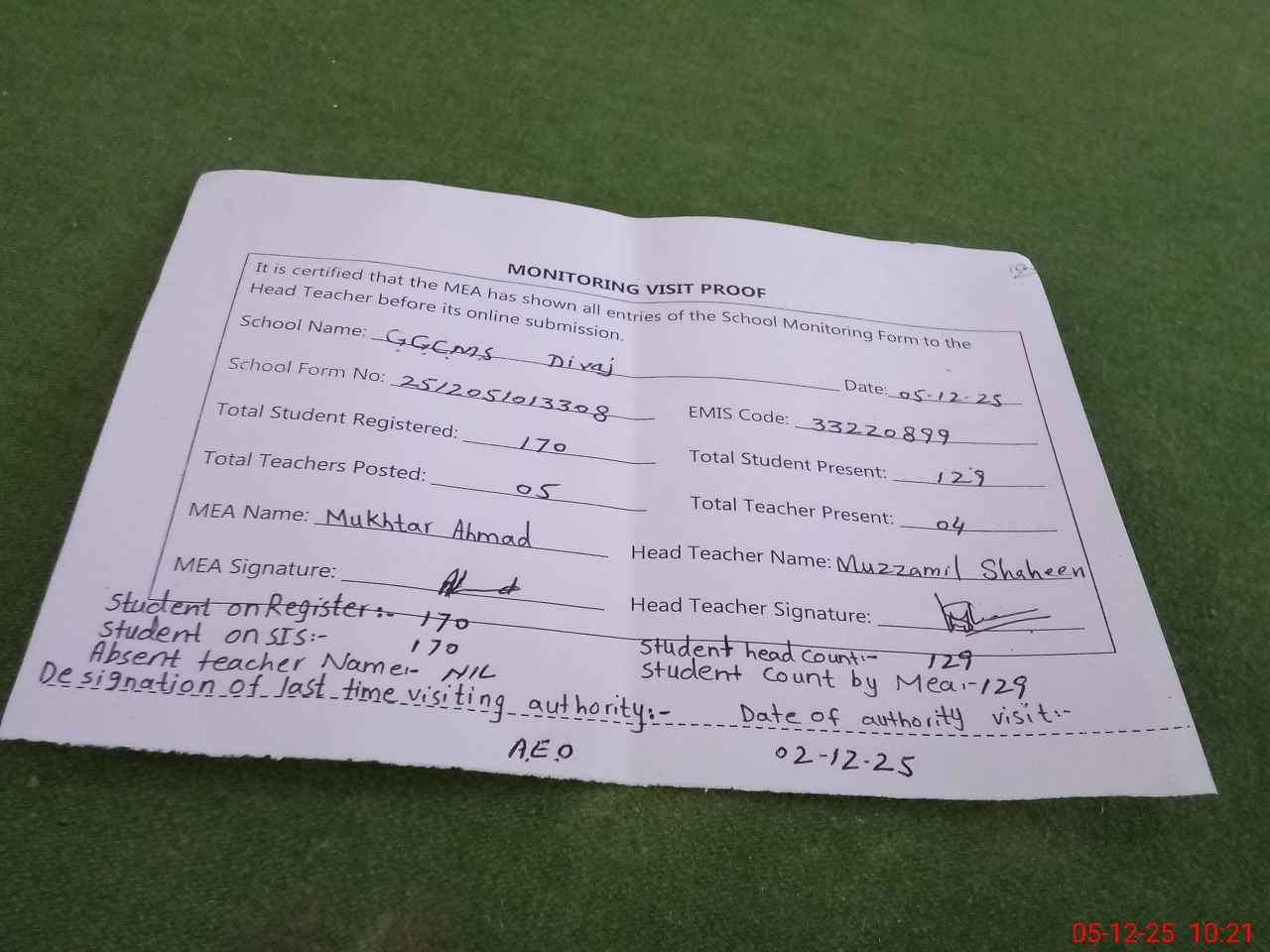 | EMIS Code: 33220899 | Name of School: GGCMS DIRAJ | |||