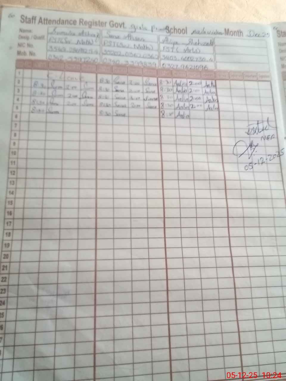 | Name: Su**** As**** Designation: (School Headmaster's/Headmistress's) PST Phone/Cell Number: 03**** |