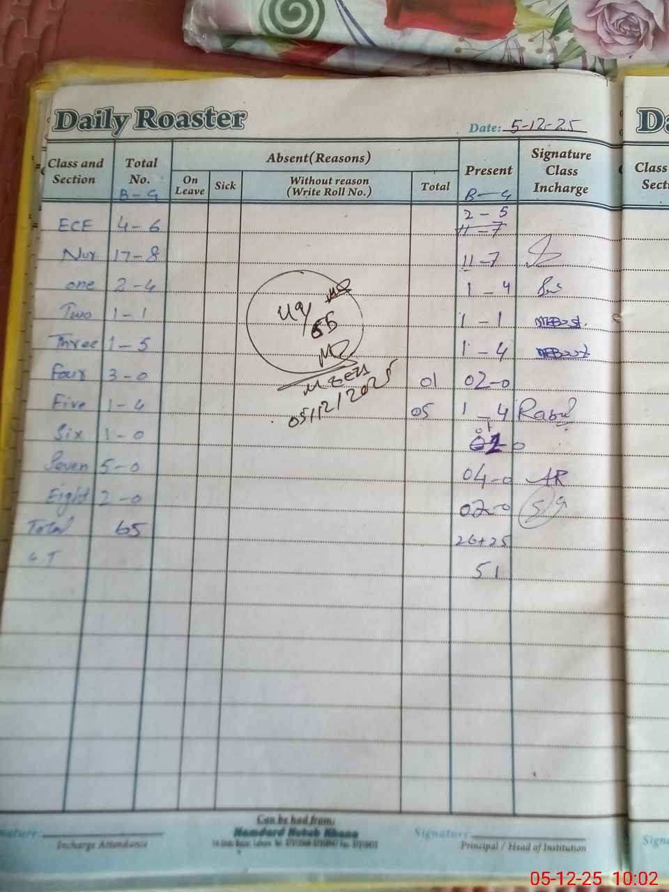 | No. of Students Present - Female | 0 | 4 | 4 | 1 | 4 | 0 | 4 | 0 | 0 | 0 | 23 | |||||