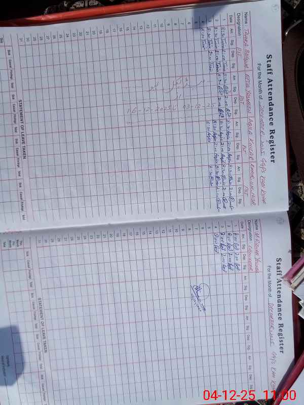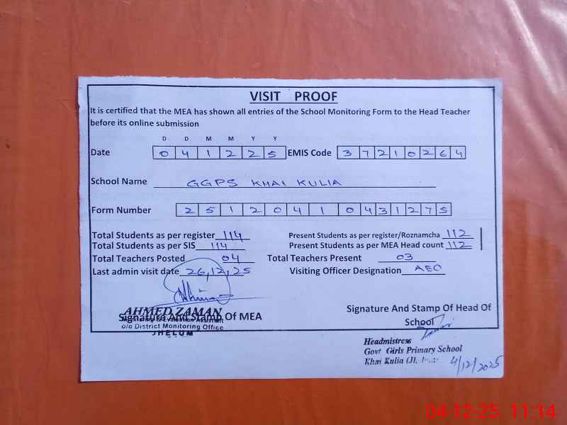 | Attendance Register | Head Teacher | MEA with School | Visit Proof |