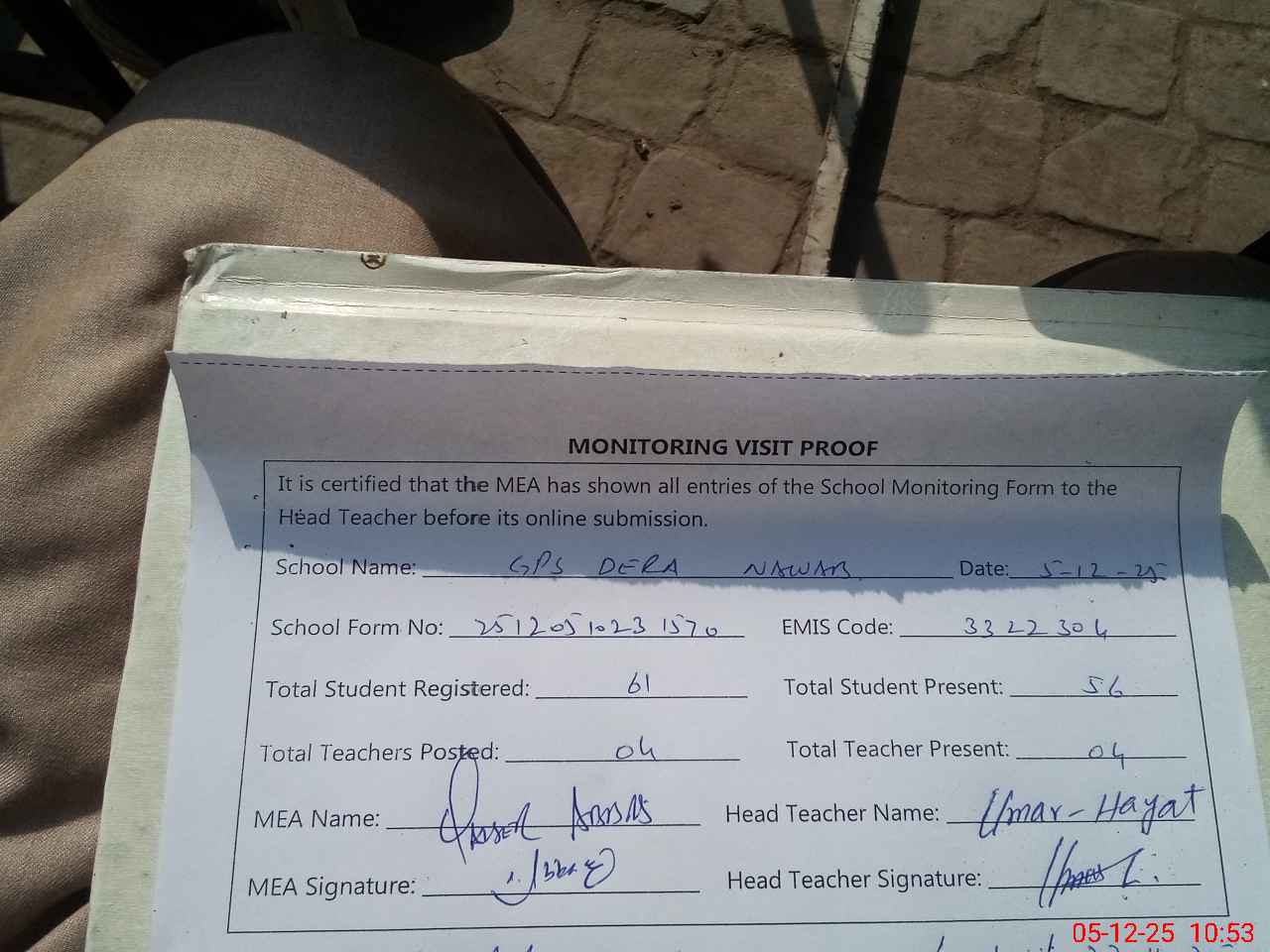 | EMIS Code: 33220304 | Name of School: GPS DERA NAWAB | |||