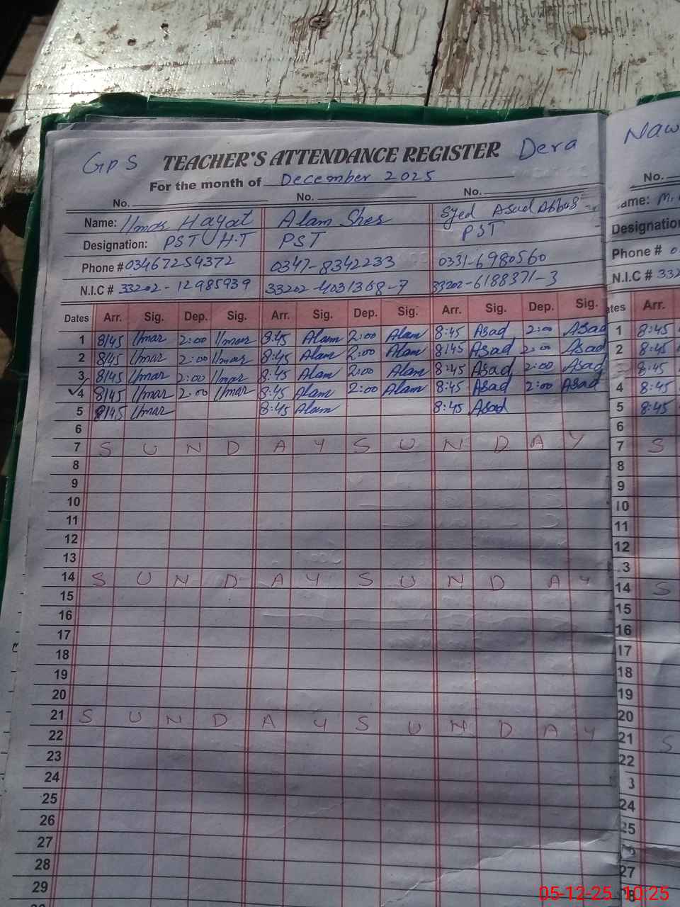 | Name: Um**** Ha**** Designation: (School Headmaster's/Headmistress's) PST Phone/Cell Number: 03**** |