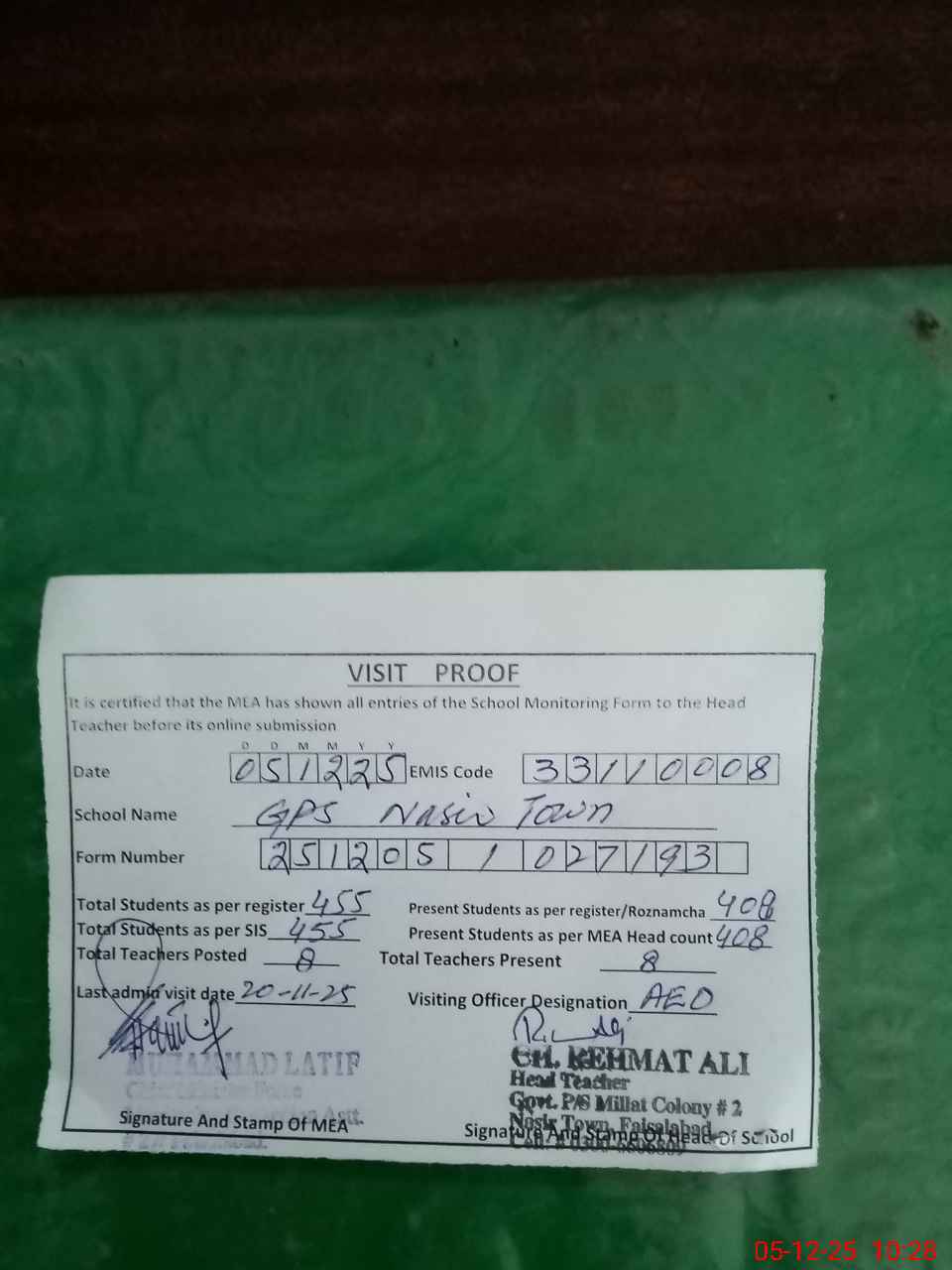 | EMIS Code: 33110008 | Name of School: GPS NASIR TOWN | |||