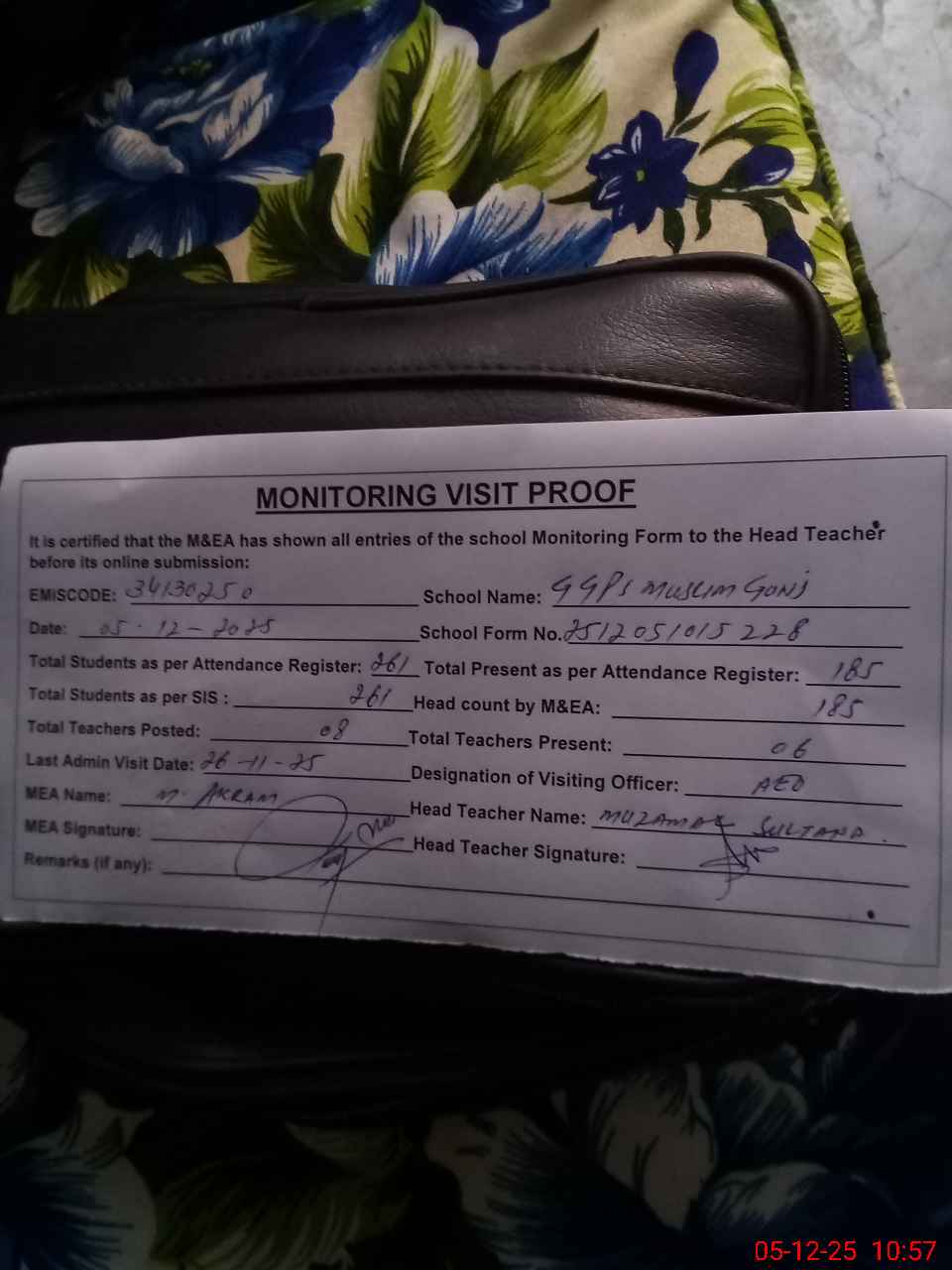 | EMIS Code: 34130250 | Name of School: GGPS MUSLIM GUNJ | |||