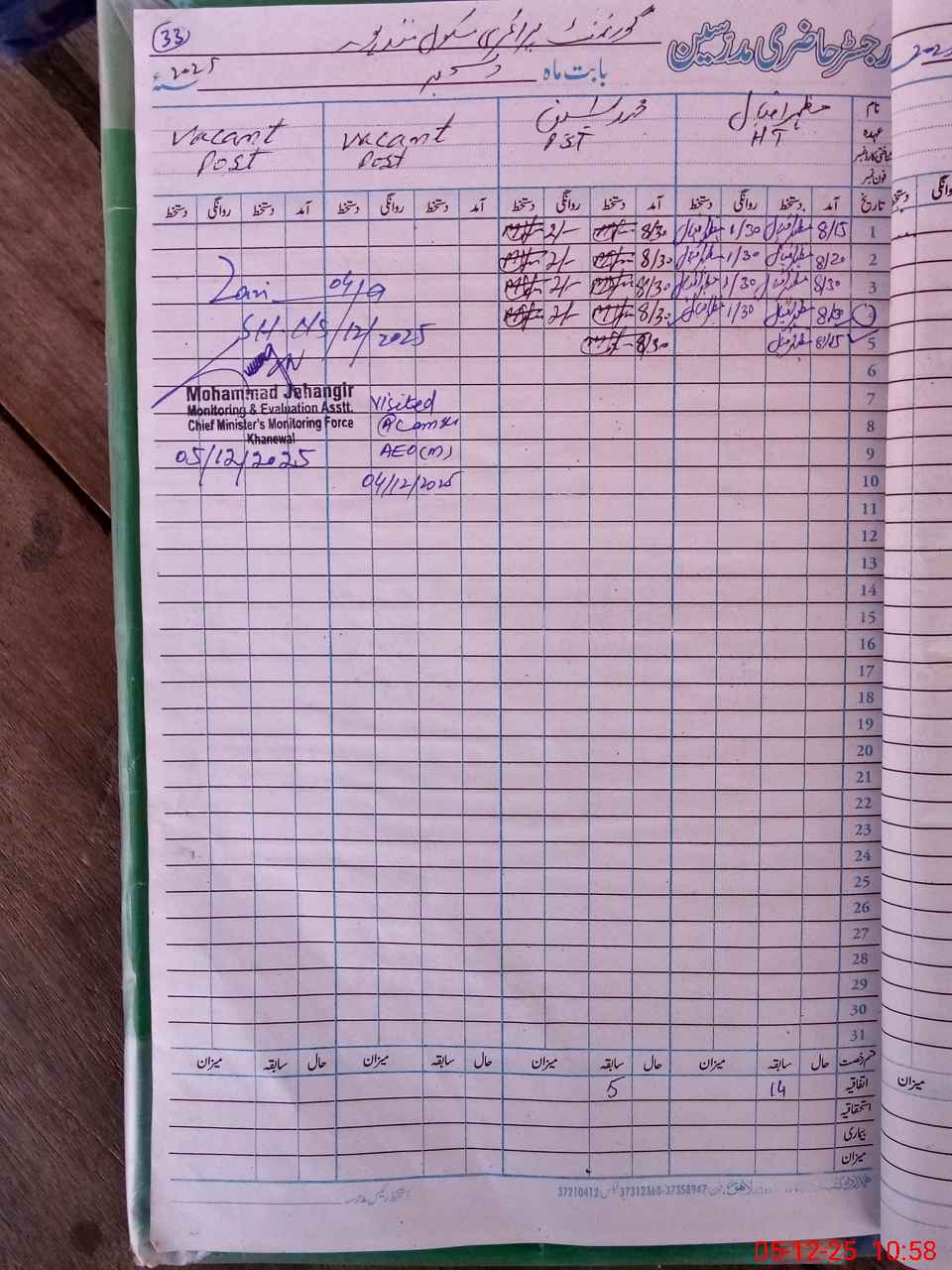 | Name: MA**** IQ**** Designation: (School Headmaster's/Headmistress's) PST Phone/Cell Number: 03**** |