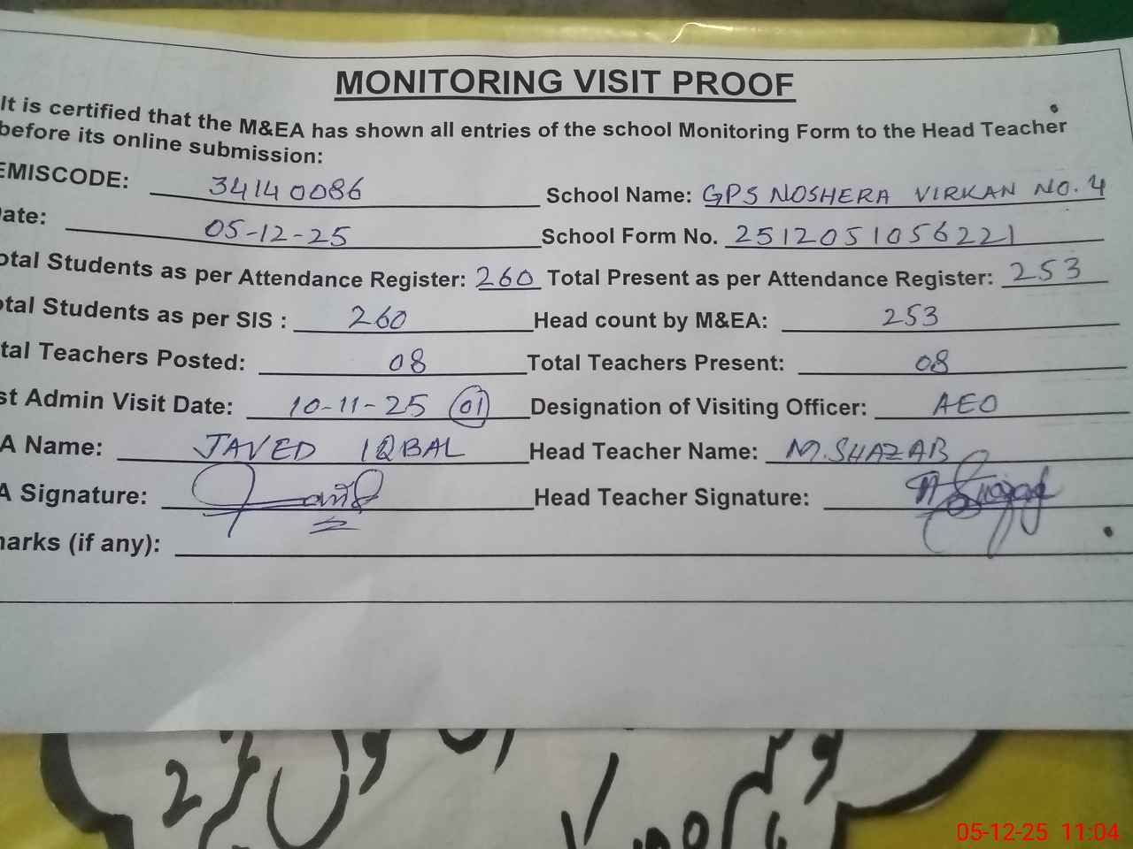 | EMIS Code: 34140086 | Name of School: GPS NOWSHERA VIRKAN NO.2 | |||