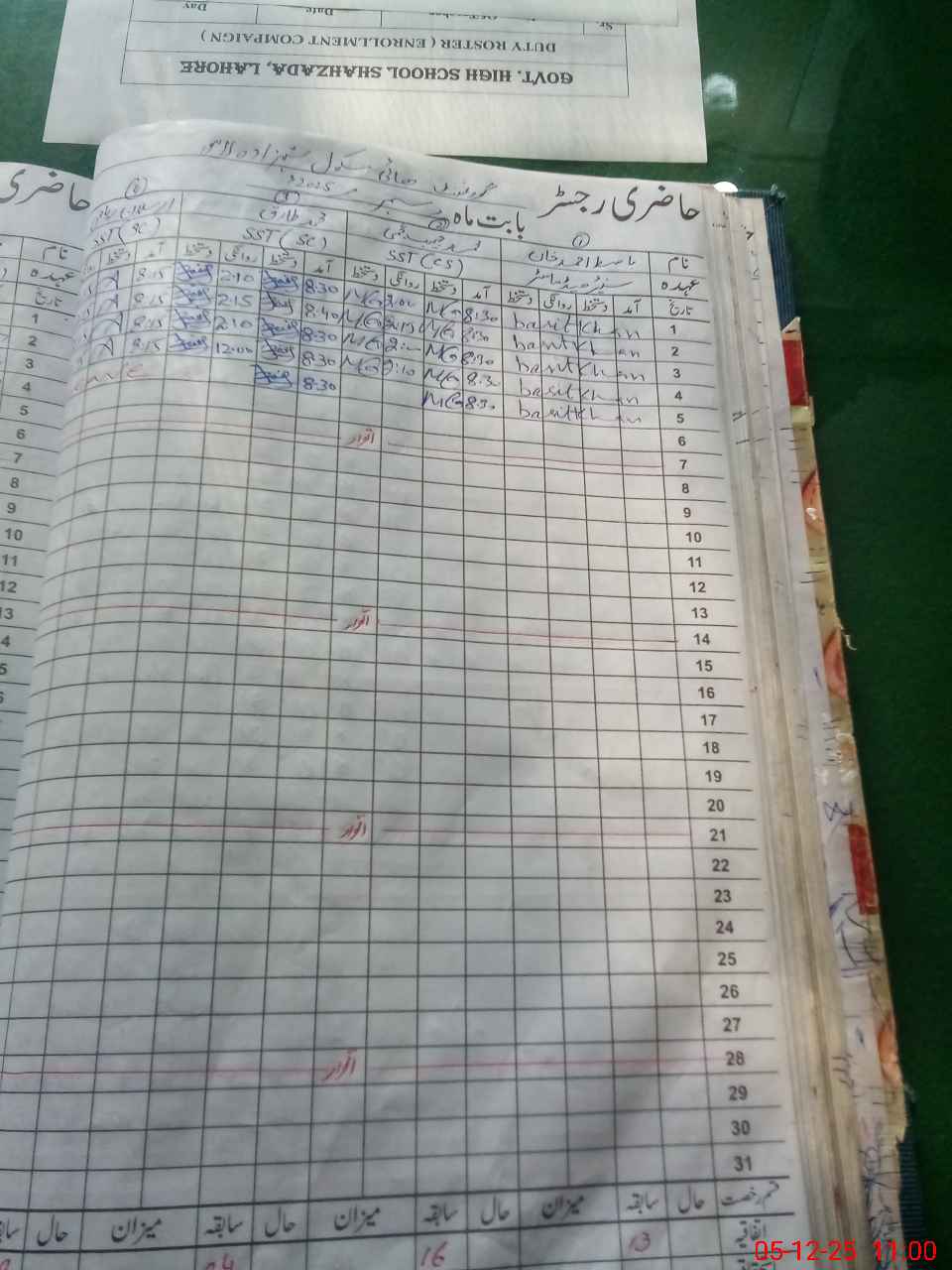 | CNIC | Full Name | Designation | R/C | Absence During Last Calender Month |