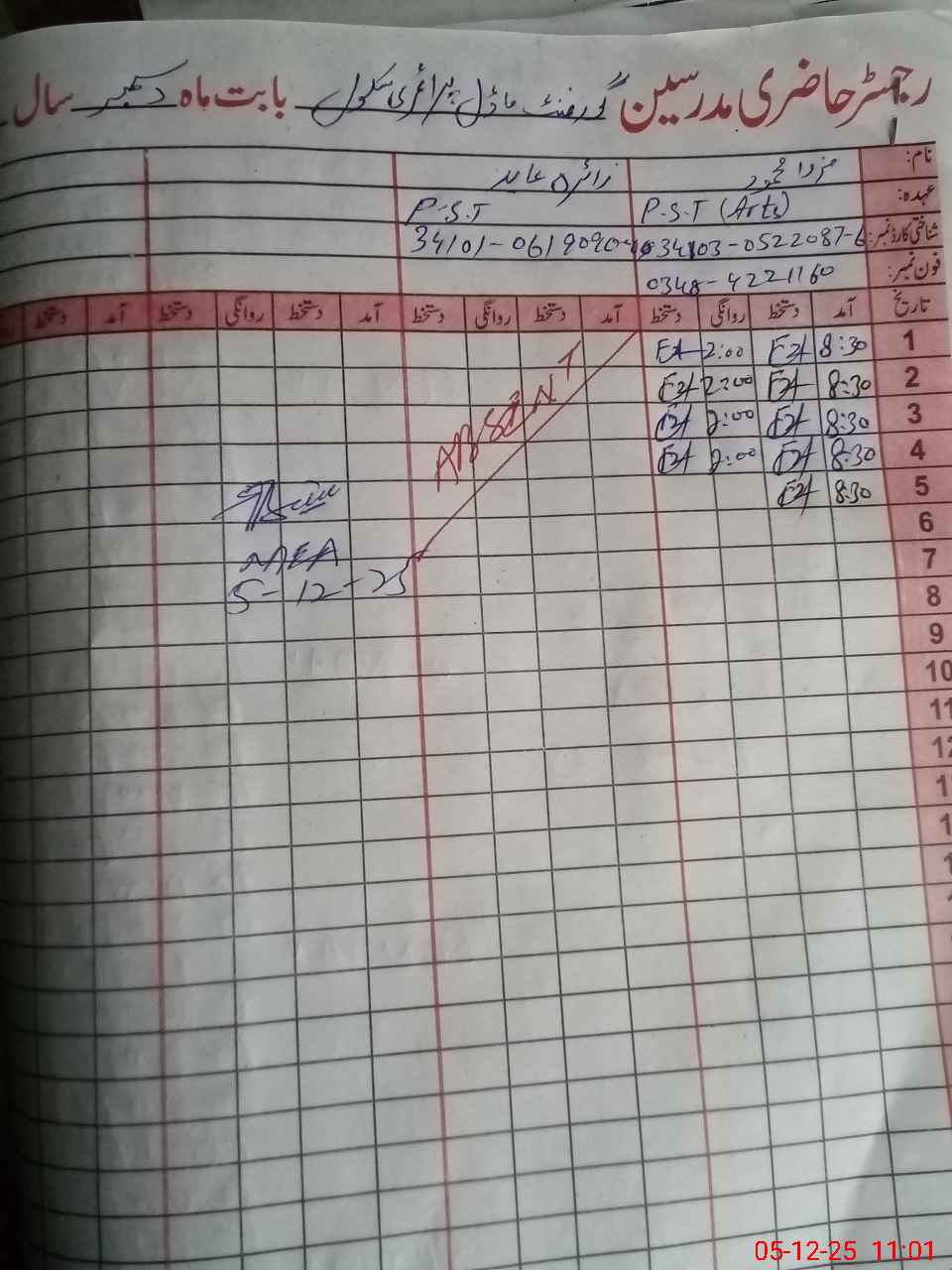 | Name: Fa**** Ma**** Designation: (School Headmaster's/Headmistress's) PST Phone/Cell Number: 03**** |