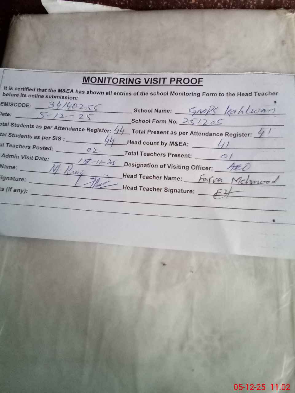 | EMIS Code: 34140255 | Name of School: GMPS KAHLWAN | |||