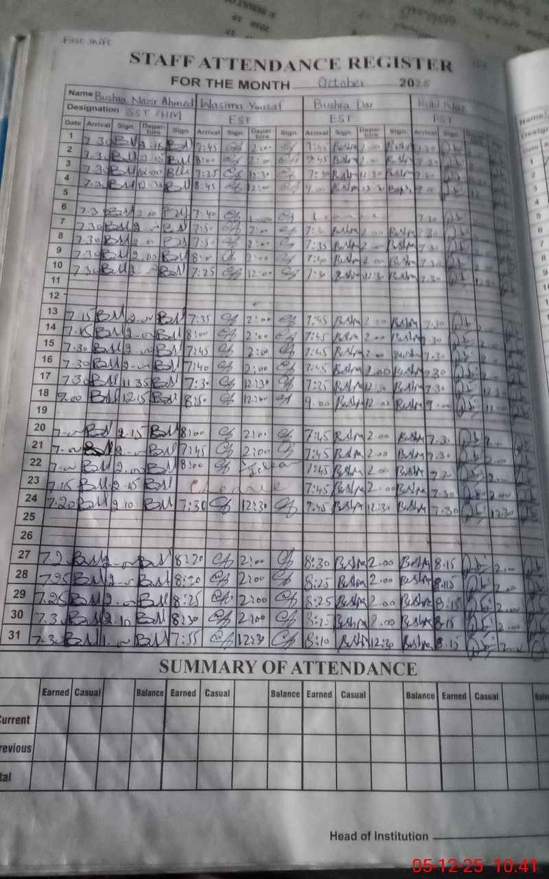 | 35**** | Su**** Sa**** | PST Arts | Regular | 0 | 0 | 0 | 0 | 0 | 0 | 0 | 0 | 0 | Casual |