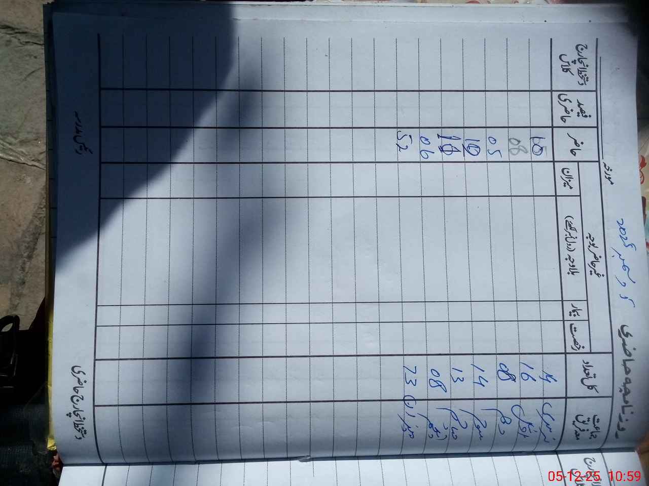 | CNIC | Full Name | Designation | R/C | Absence during last cal. month |