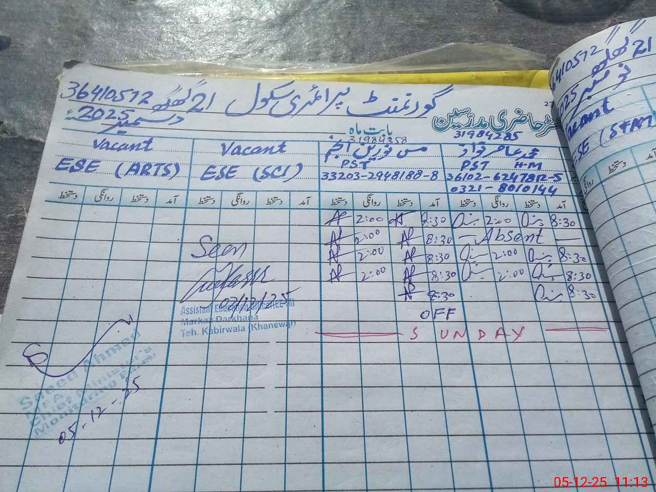 | Name: MU**** AA**** NA**** Designation: (School Headmaster's/Headmistress's) ESE (SC+MATH ) Phone/Cell Number: 03**** |