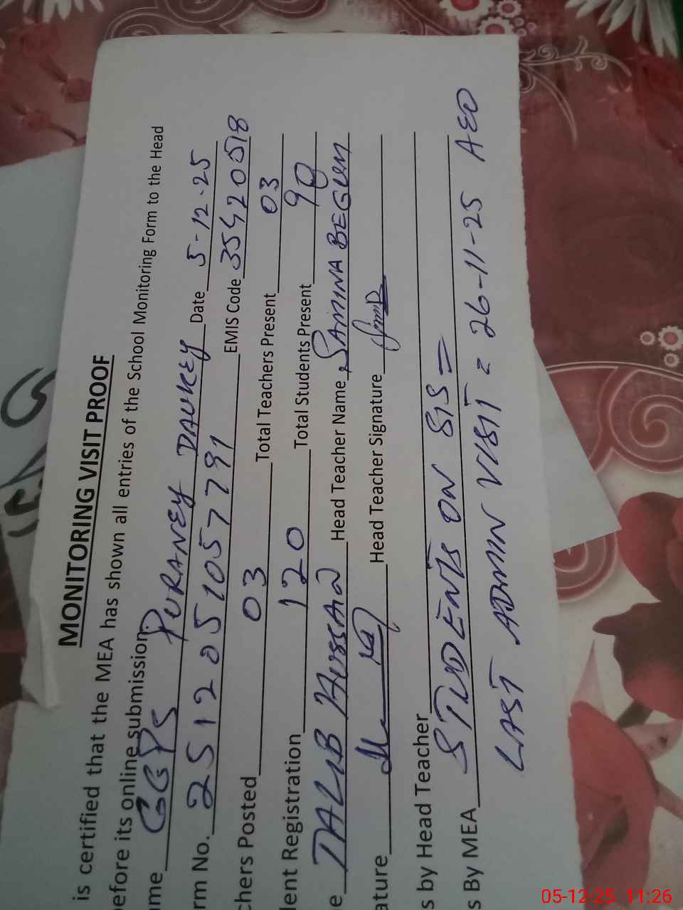 | Certified that this School was Inspected by the Undersigned MEA/DMO Today and the Information Stated Above is as Per Record. | |||||