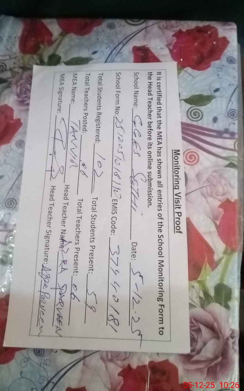 | Name: Az**** Pa**** Designation: (School Headmaster's/Headmistress's) Est Phone/Cell Number: 03**** |