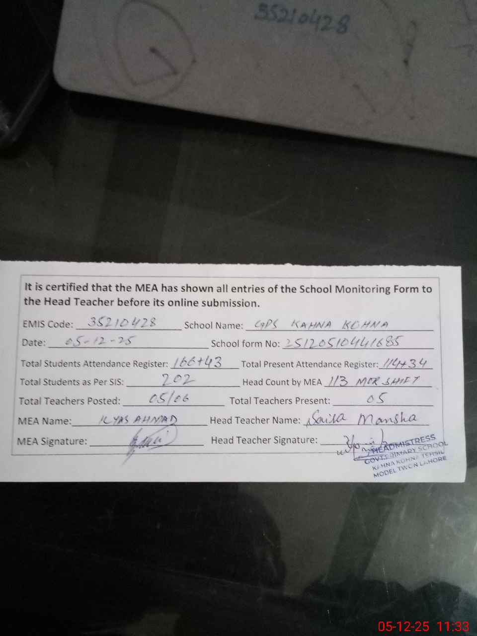 | EMIS Code: 35210428 | Name of School: GPS KAHNA KOHNA | |||
