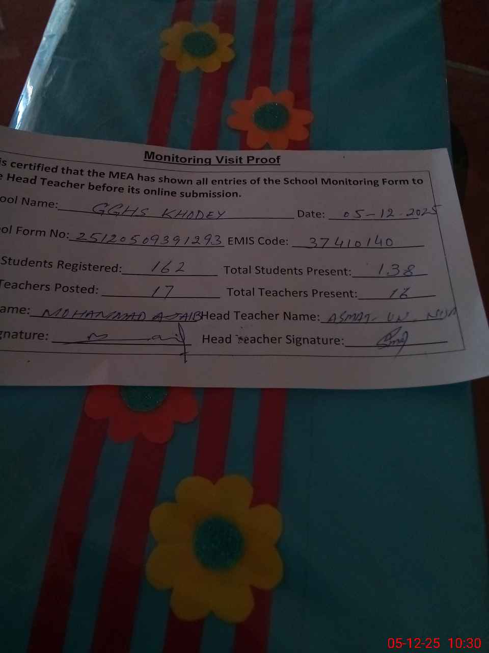 | EMIS Code: 37410140 | Name of School: GGHS KHODEY | |||